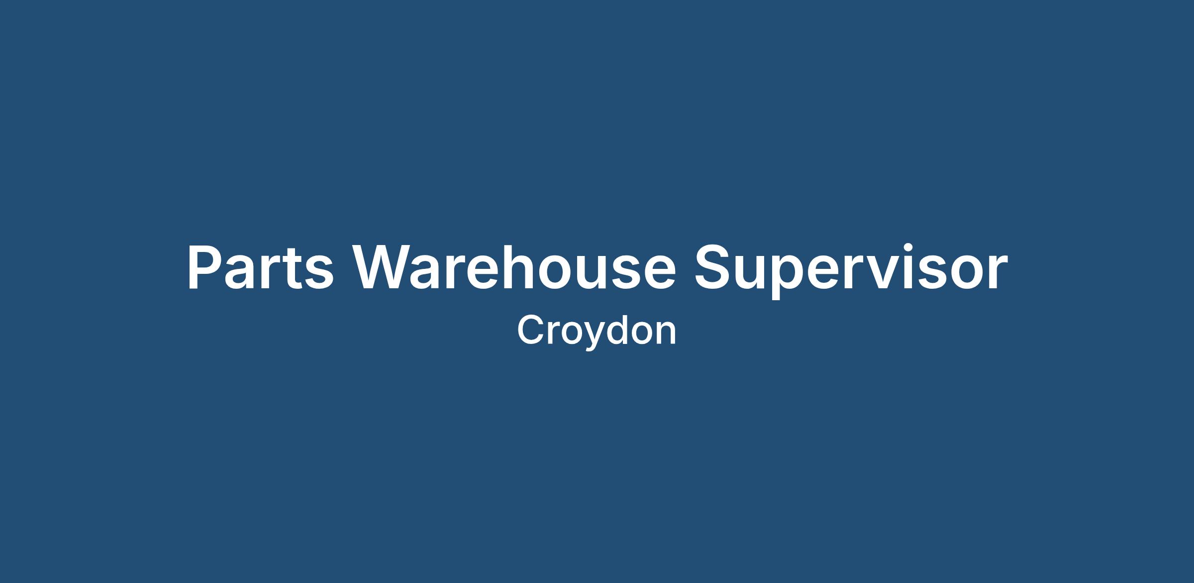 We are recruiting an Experienced Parts Warehouse Supervisor for a Franchised Car Dealer Group in the Croydon area.