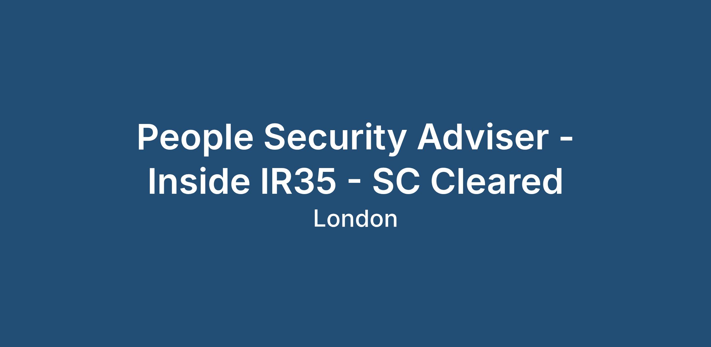 People Security Adviser - Inside IR35 - SC Cleared