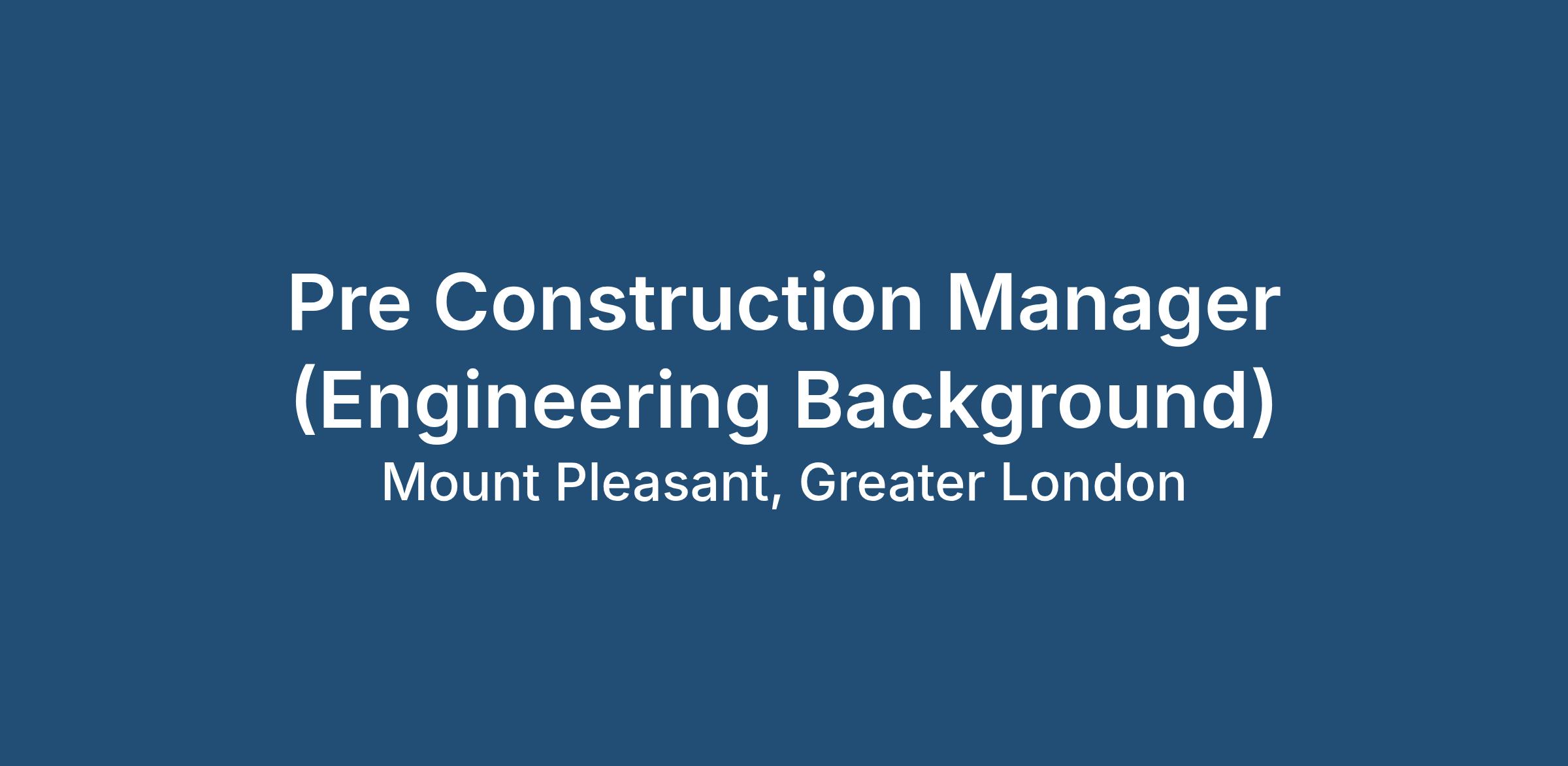 Due to continued sustainable growth and the acquisition of new projects they are keen to identify a Pre Construction Manager with an interest in adding their value to the process of planning and estimating of new schemes.