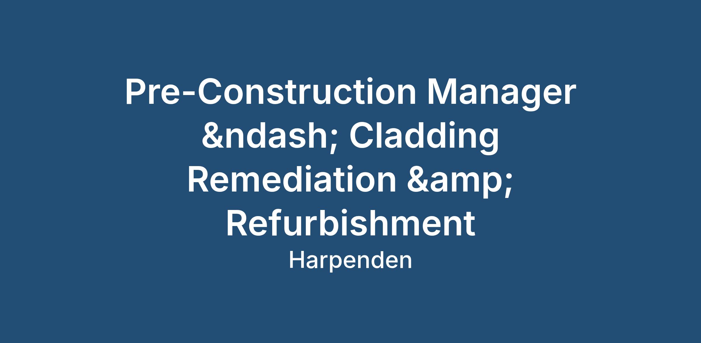 Strong background in cladding remediation, building safety or refurbishment projects (desirable)