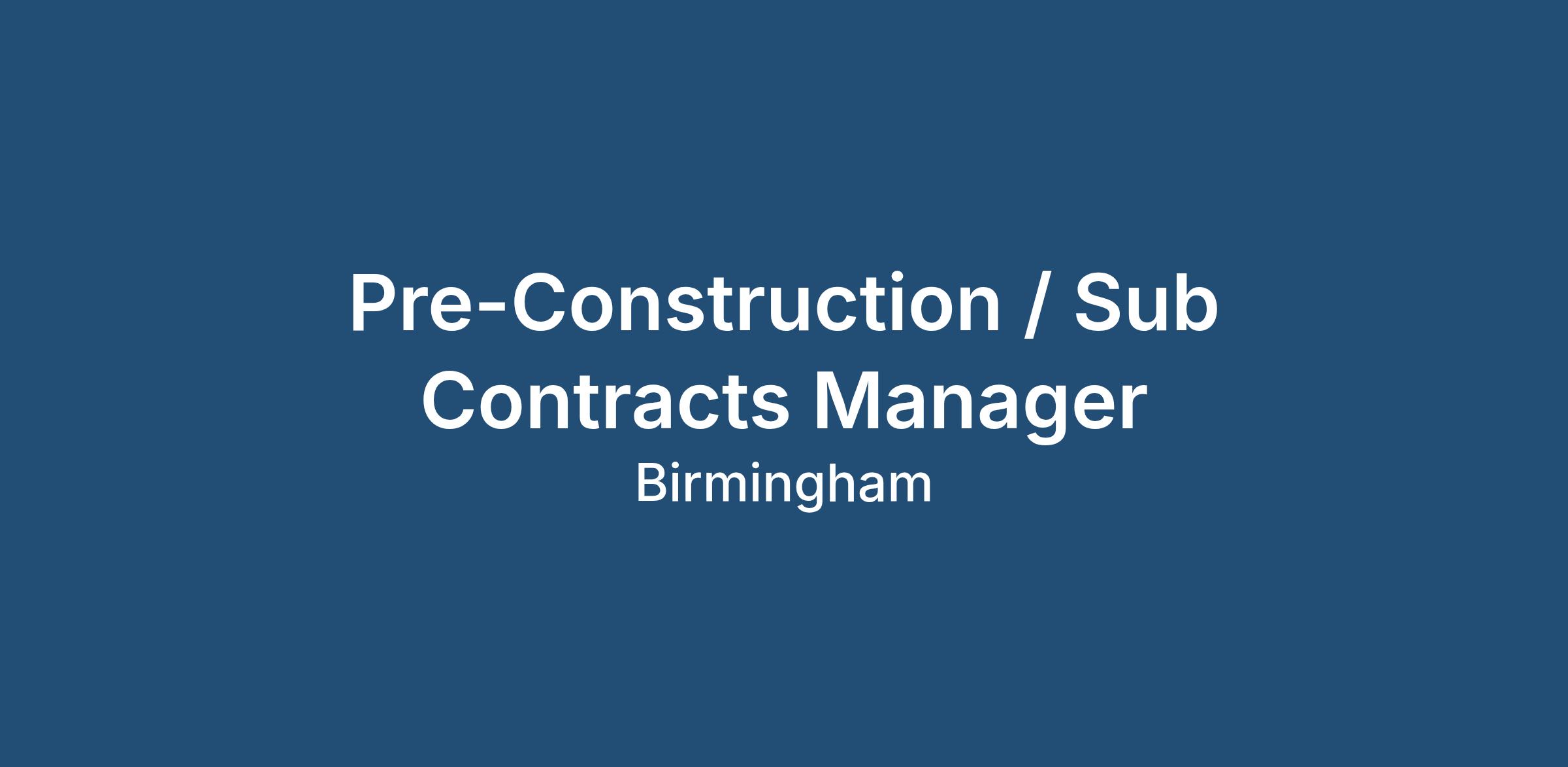 Pre-Construction / Sub Contracts Manager