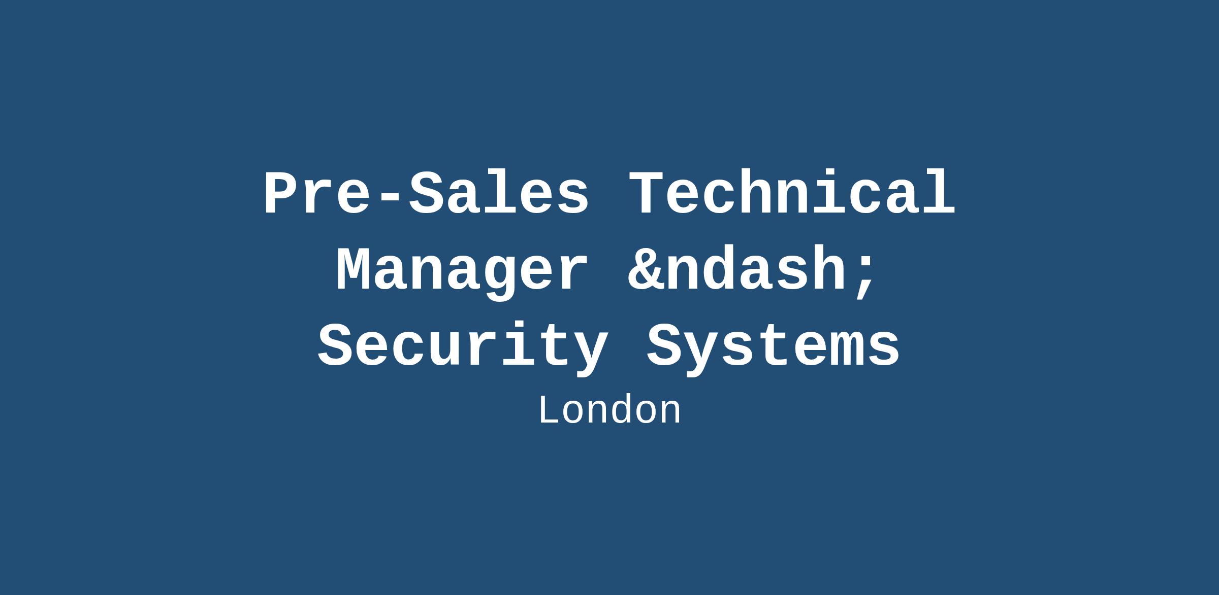 Pre-Sales Technical Manager – Security Systems
