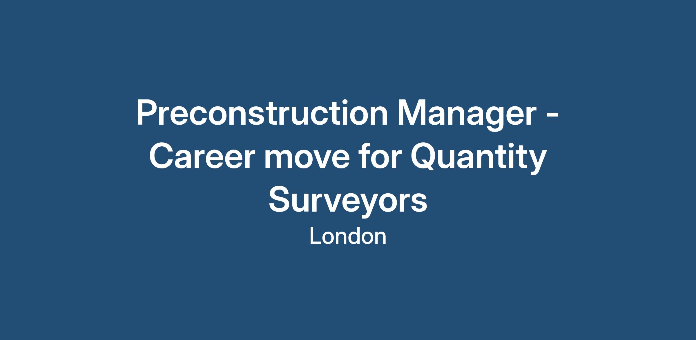 Preconstruction Manager - Career Move for Quantity Surveyors / Commercial Managers