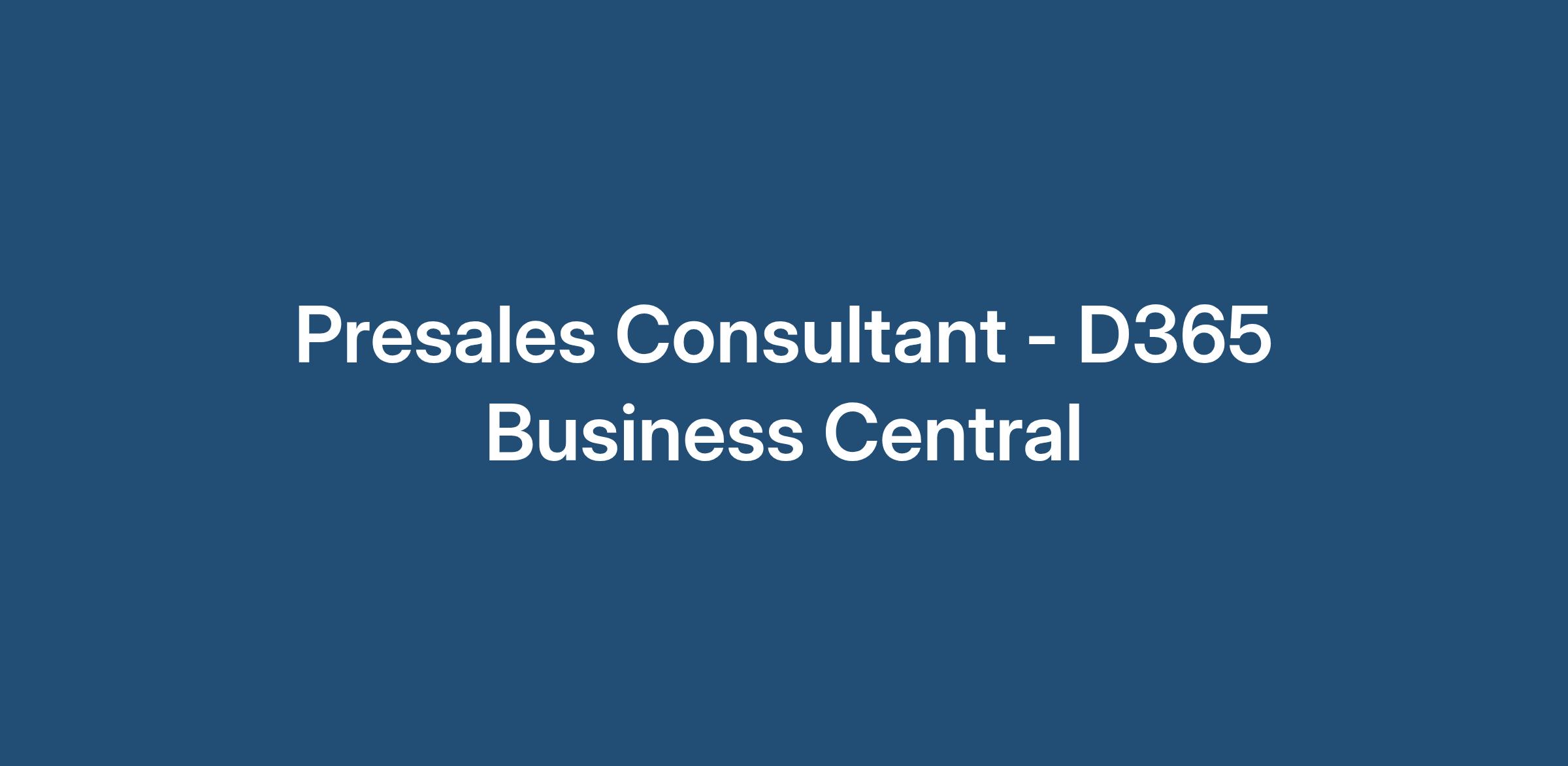 Presales Consultant – Microsoft Dynamics Business Central