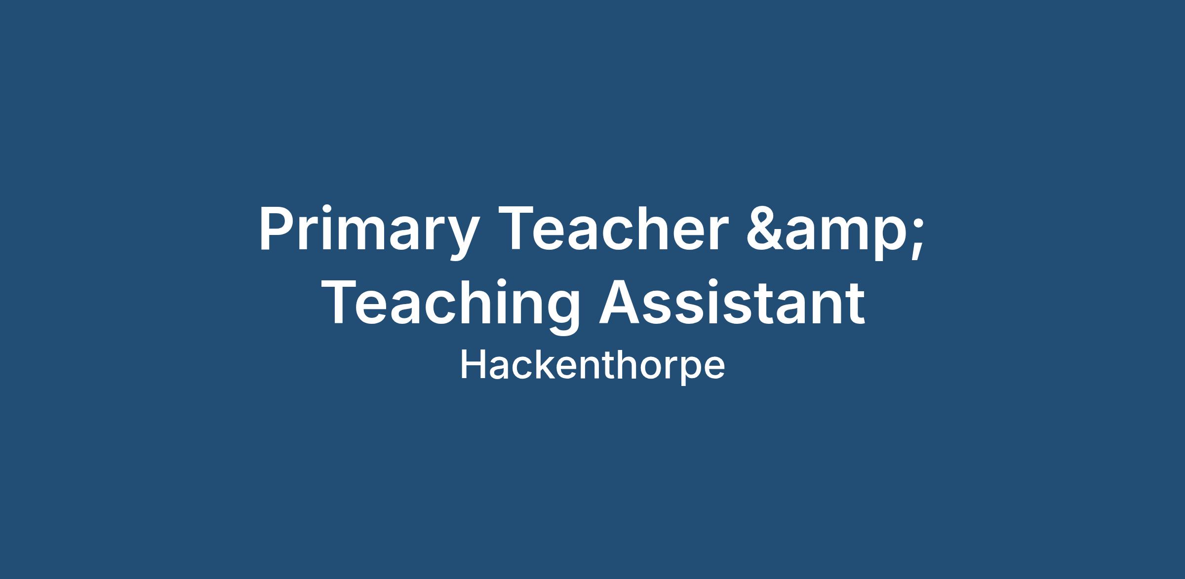 Primary Teaching Assistants & Primary Teachers Needed – Sheffield & Rotherham