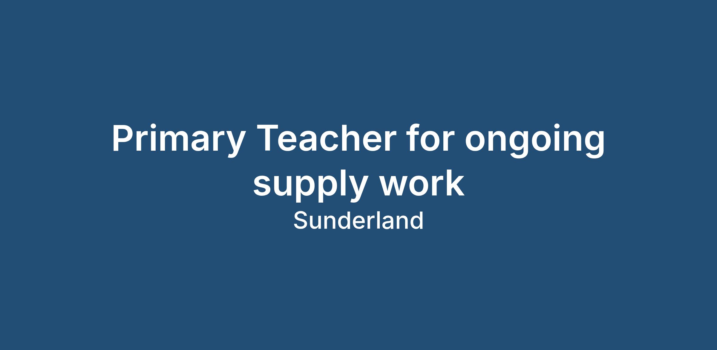 Primary Teachers in all subjects are required for a Trust of partner Primary schools in the Sunderland area which we are working with as a company. You will deliver your subject to Primary pupils selecting from your preference of short to medium term, or long term supply opportunities. This is a fantastic group of Catholic Schools with mixed sex and has supportive and friendly staff and managers. As these schools have selected to partner with us as a company, you can expect to be regularly booked and to be invited to CPD, get to know staff and pupils and feel part of the staff and valued.