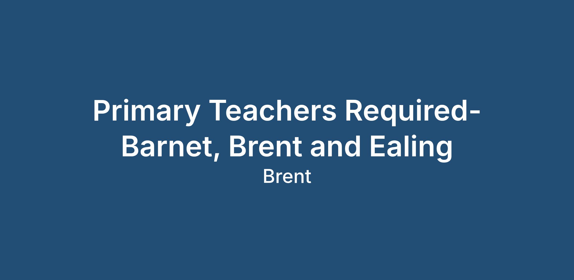 Primary Teachers Required- Barnet, Brent and Ealing