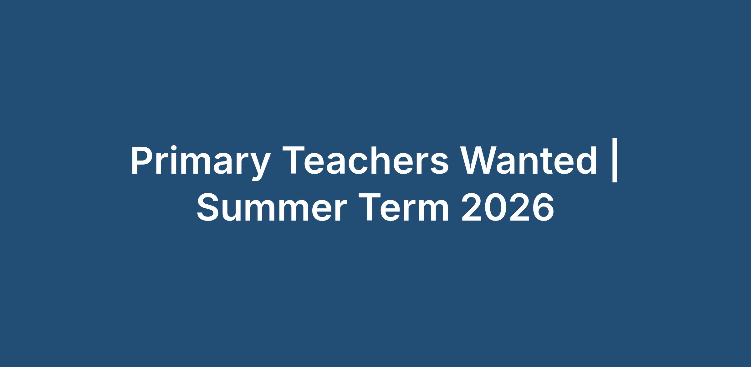 Primary Teachers Wanted | Summer Term 2026