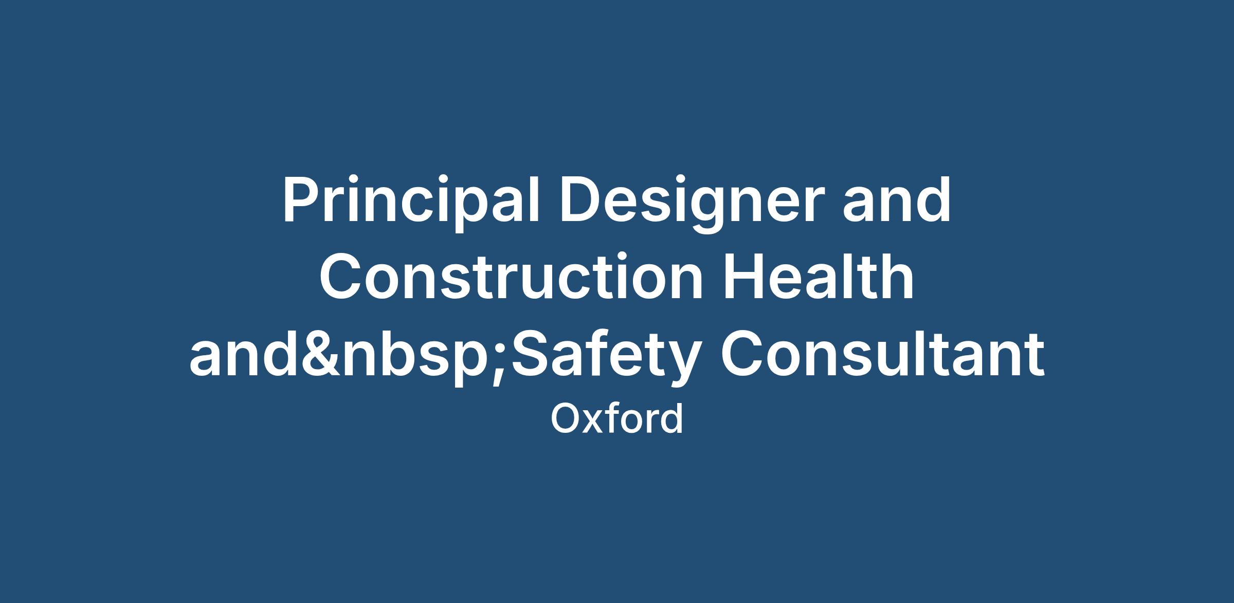 Principal Designer and Construction Health and Safety Consultant required to join a well-established, national dedicated Construction Health, Safety and CDM Consultancy.