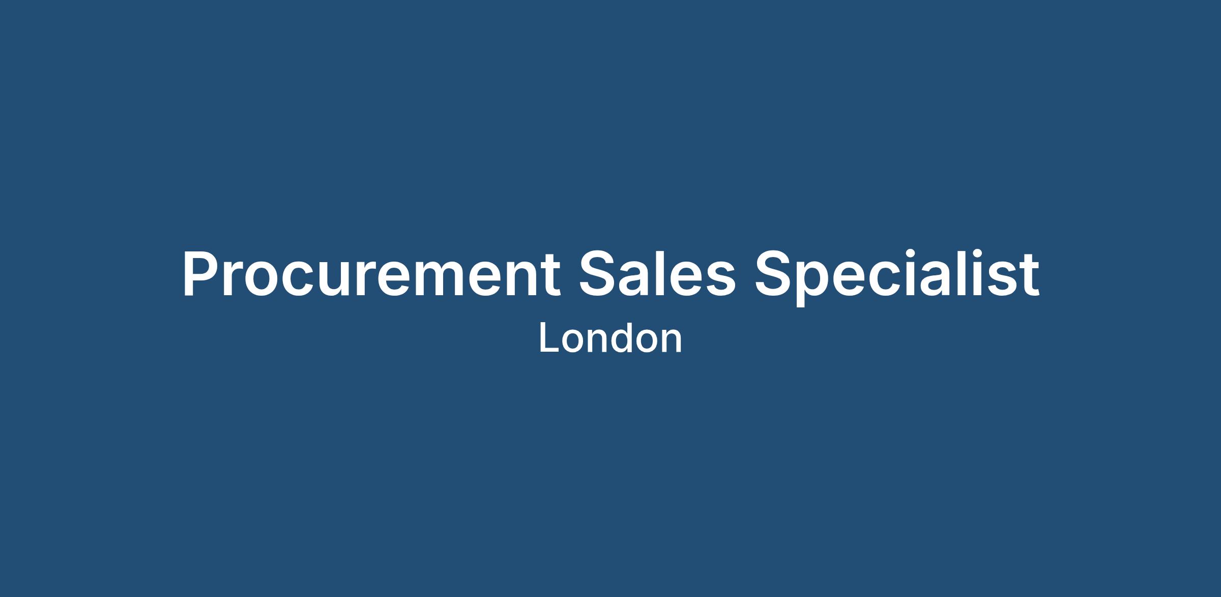 About the Role - Procurement Sales Specialist