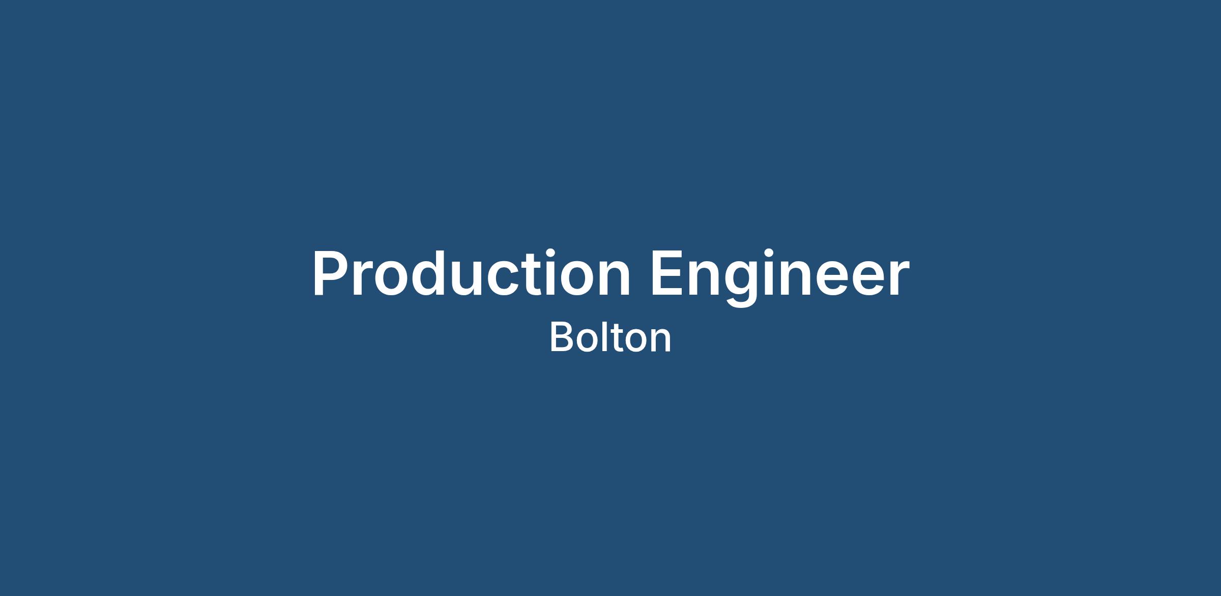 We are looking for a Production Engineer to join a well established UK manufacturer based in Bolton that is part of a global organisation. The successful candidate will play a key role in supporting production and engineering teams.