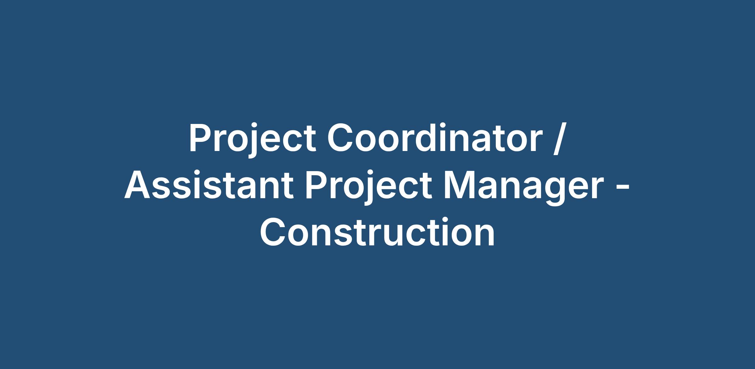 Project Coordinator / Assistant Project Manager - Construction