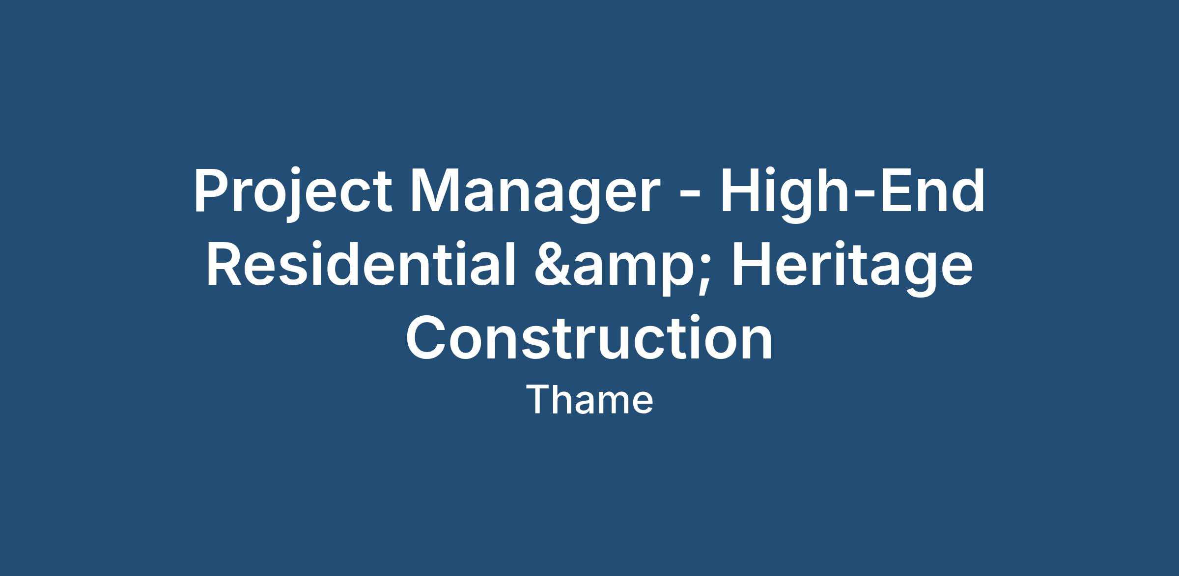 The Project Manager will typically oversee high-quality residential or heritage projects, often involving complex refurbishment or architect-led new build schemes.