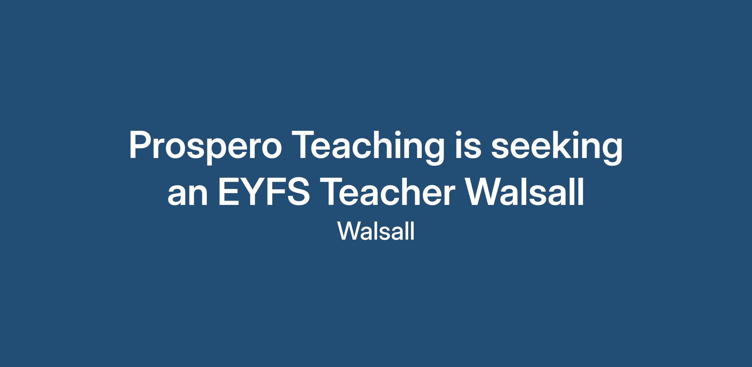 Prospero Teaching is seeking an EYFS Teacher Walsall