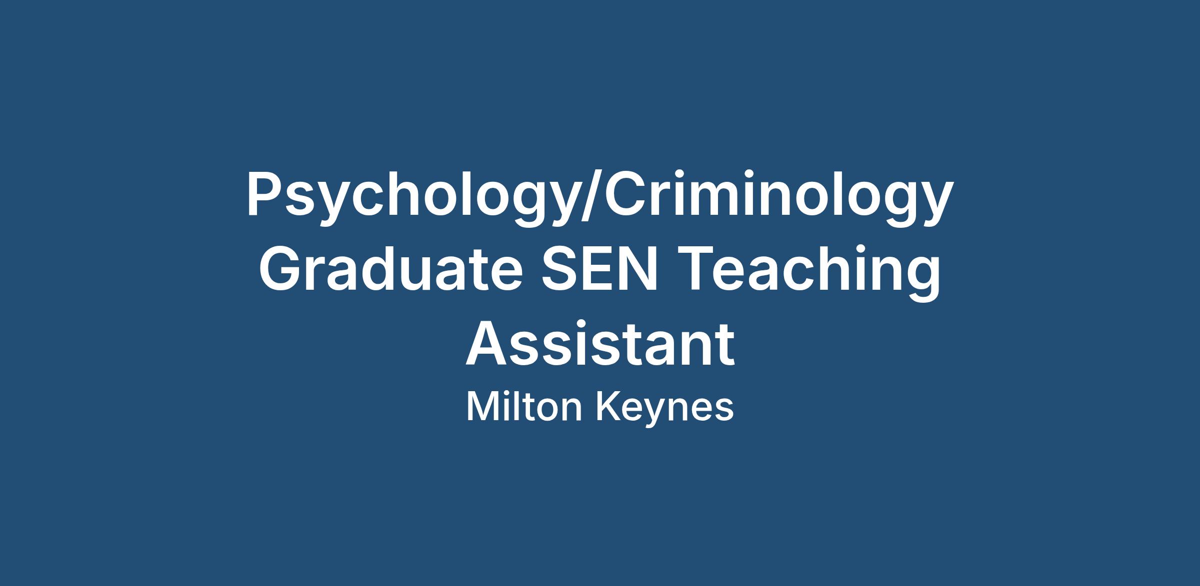 Job Role - Psychology/Criminology Graduate SEN Teaching Assistant, Milton Keynes