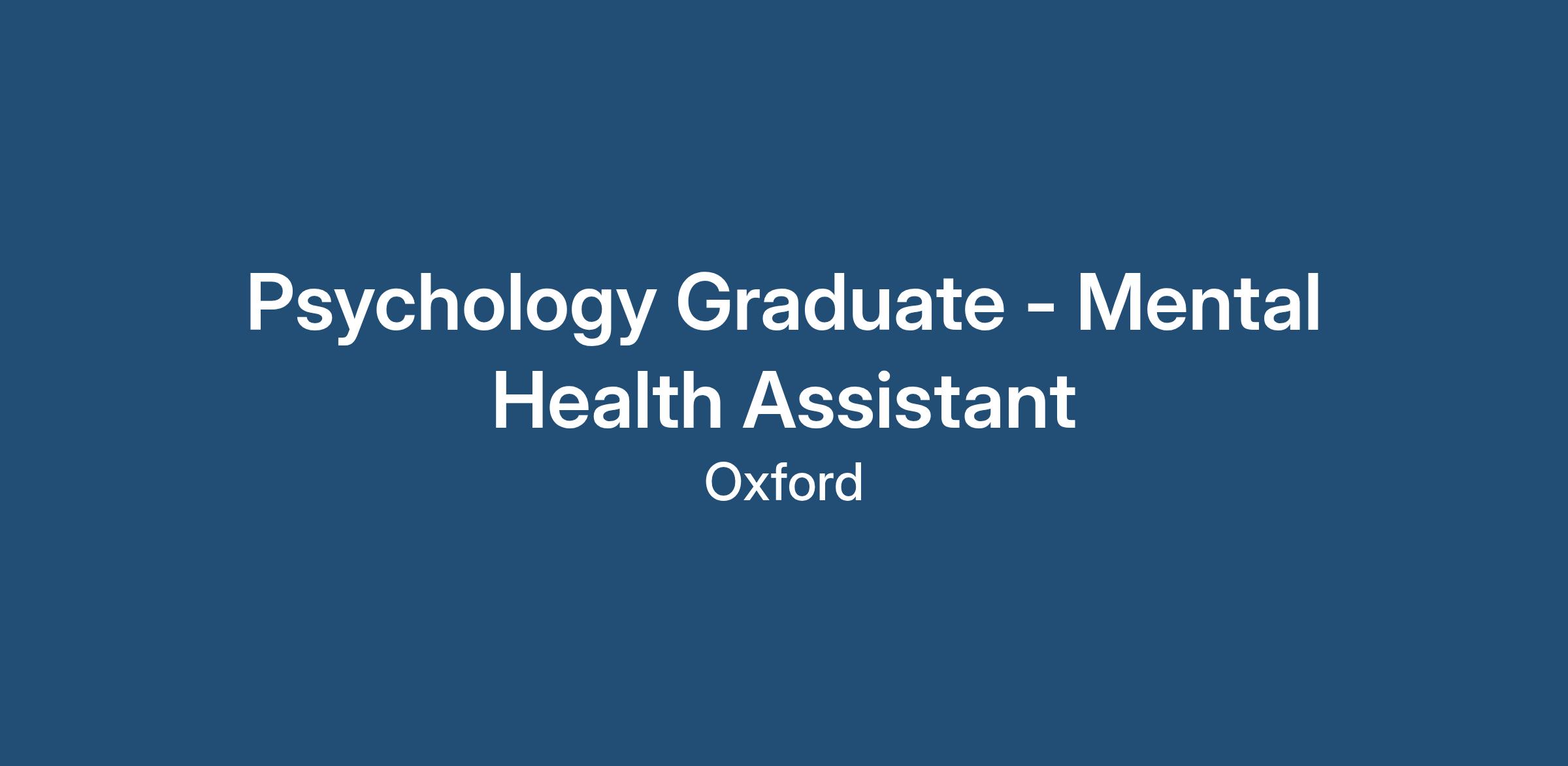 Psychology Graduate - Mental Health Assistant - Oxford - ASAP Start