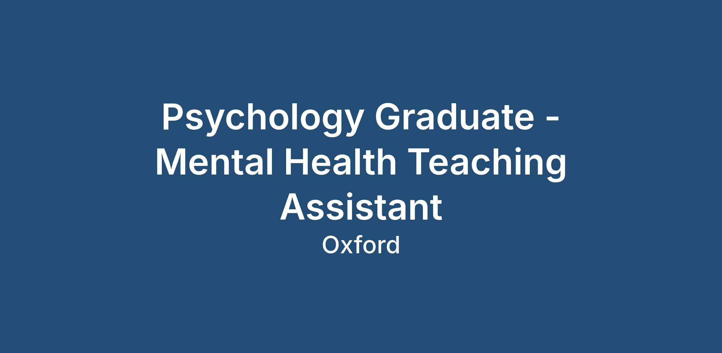 Psychology Graduate - Mental Health Teaching Assistant