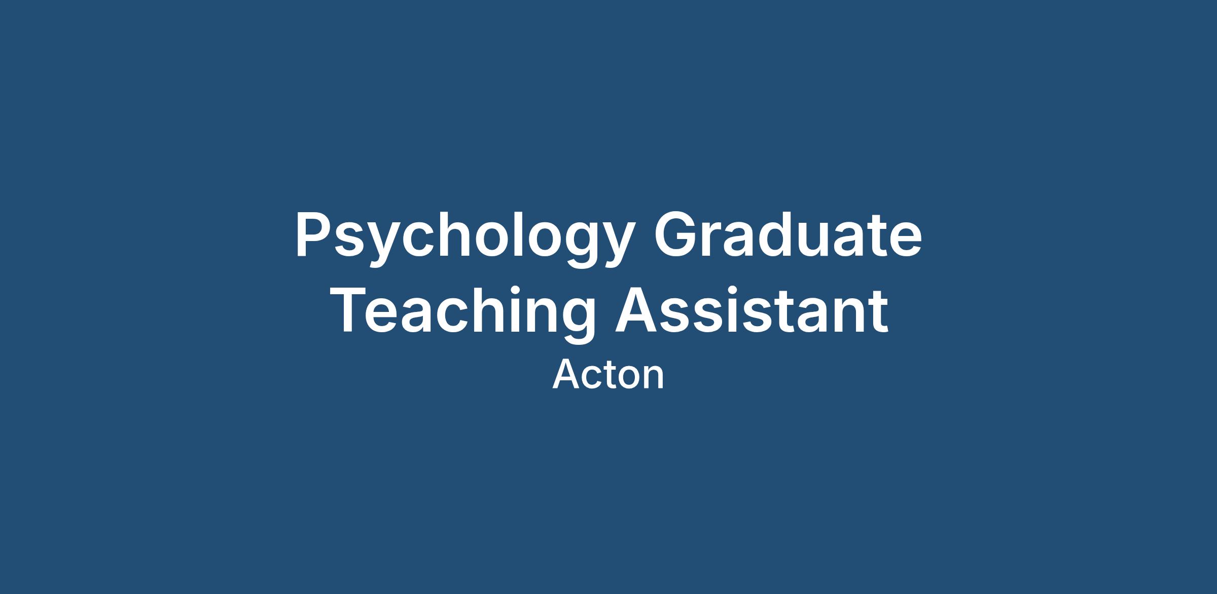 Psychology Graduate Teaching Assistant - Acton (Secondary SEN School)