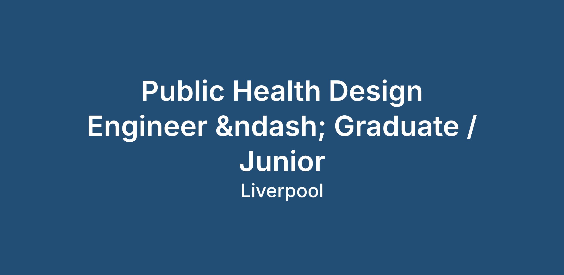 An established and growing building services consultancy in Liverpool is looking to bring in a Graduate / Junior Public Health Design Engineer as part of the continued growth of its building services design team.