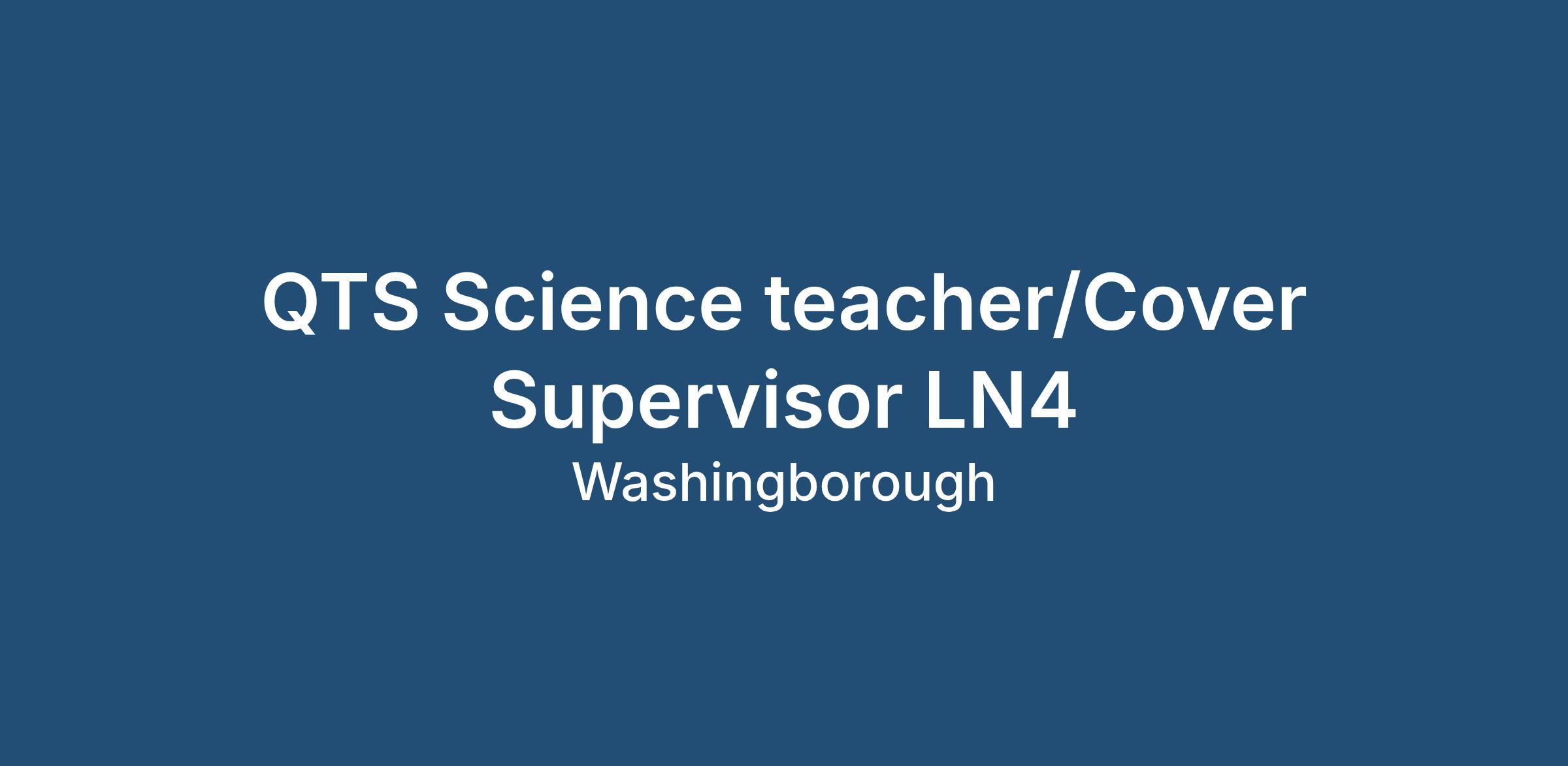 * Position - QTS Science Teacher Cover Supervisor with a science background, long term ongoing