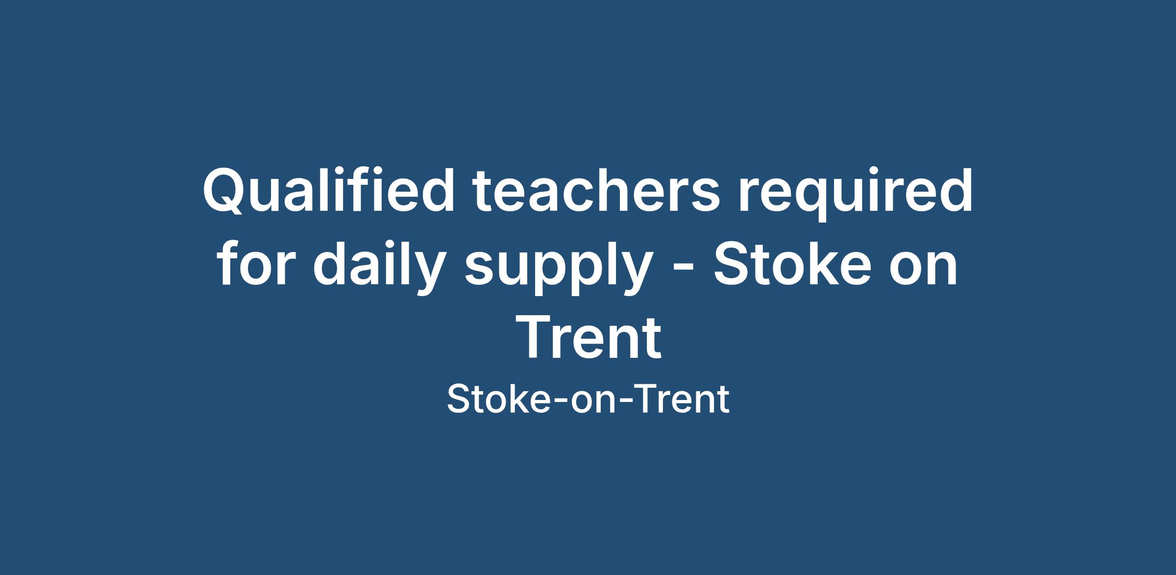 Qualified Teachers Required for Daily Supply Work - Stoke-on-Trent