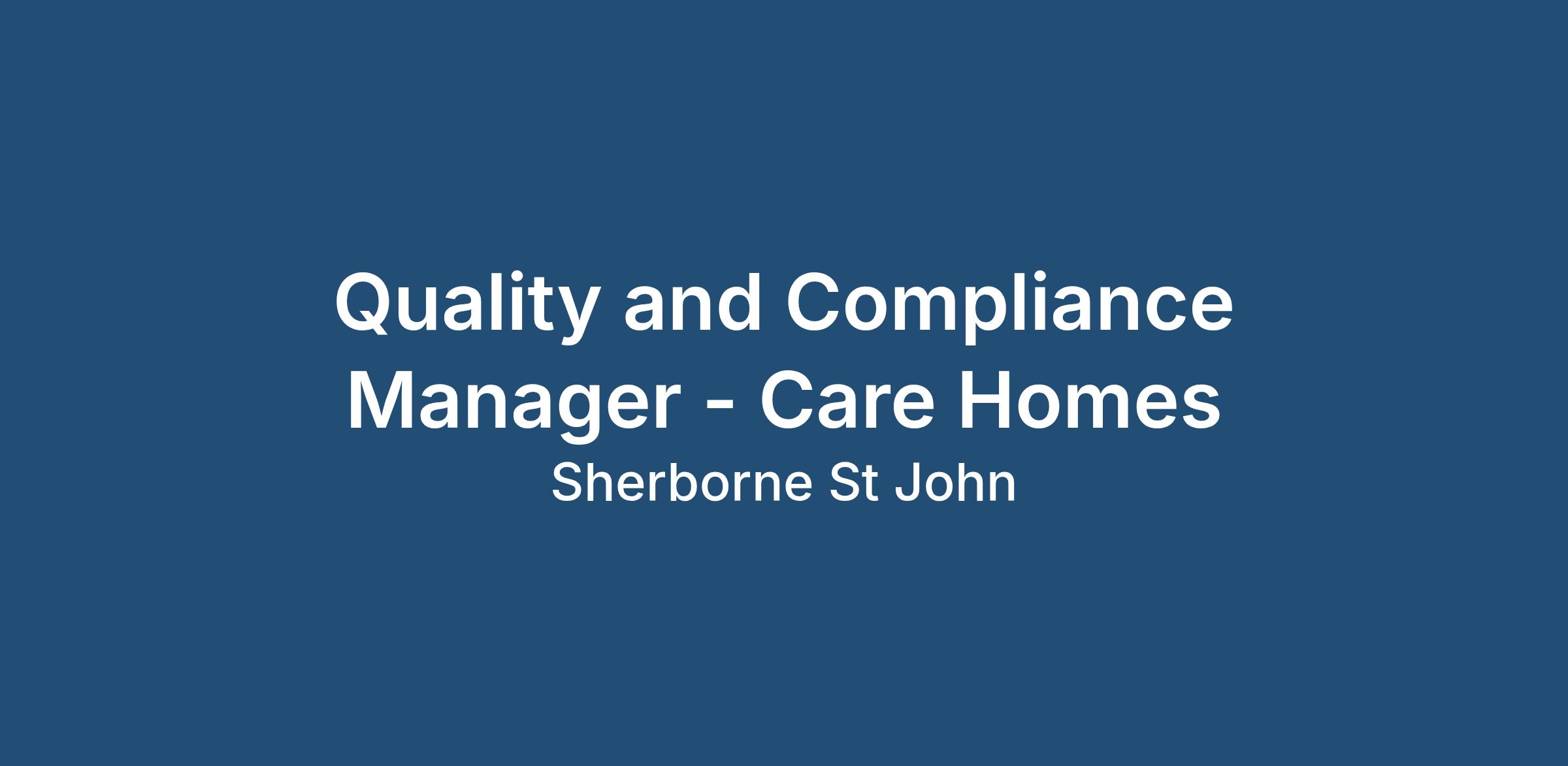 Quality and Compliance Manager - Care Homes