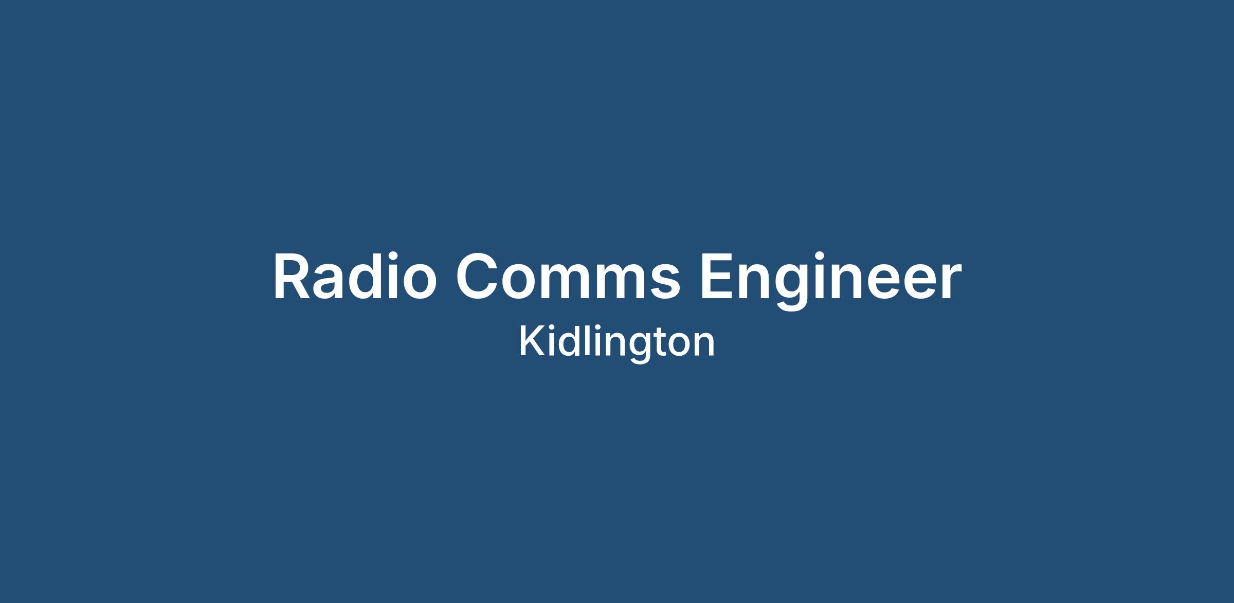 Job Advertisement: Radio Comms Engineer