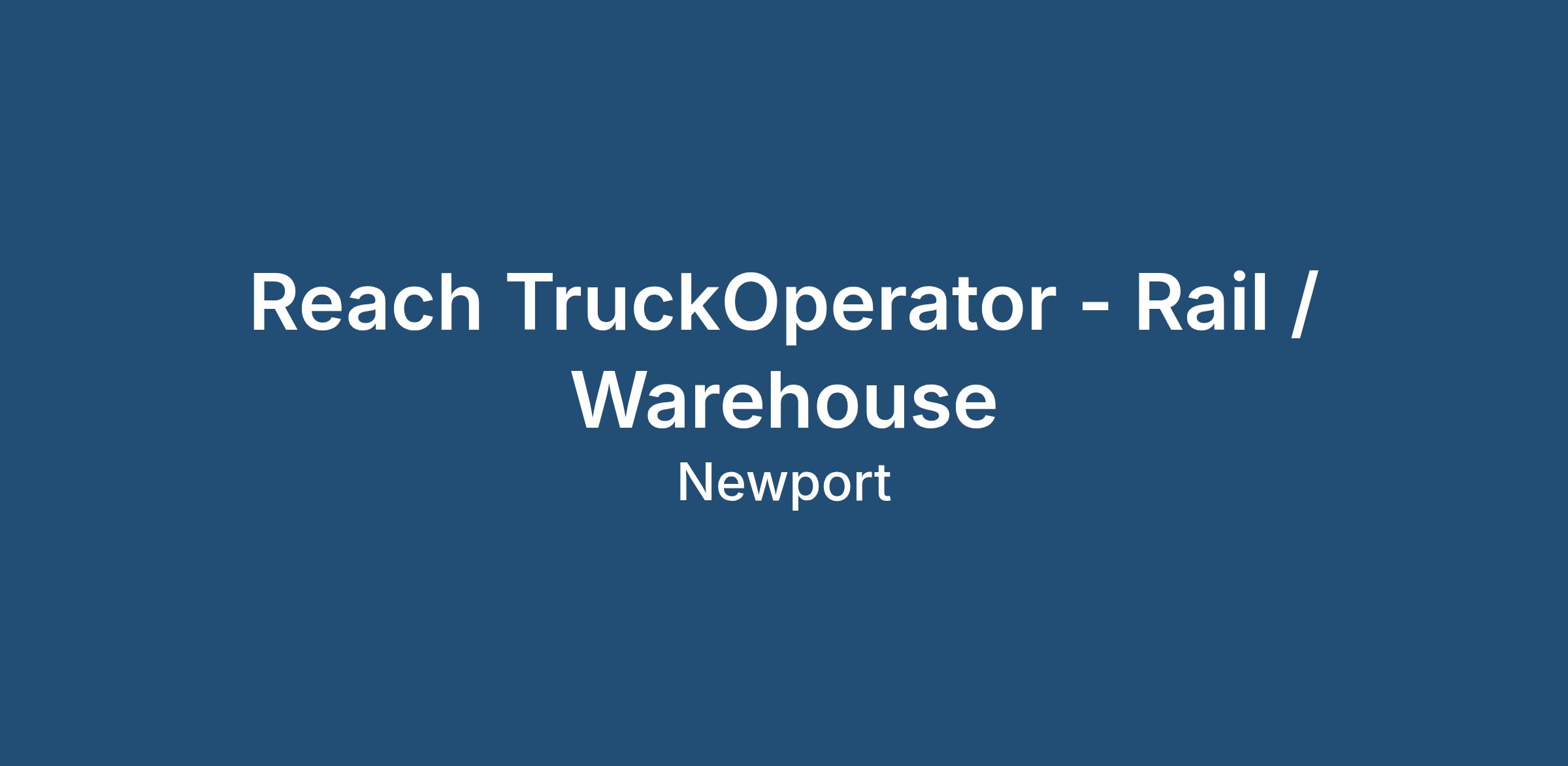 Job Title: Reach Truck Operator - Rail / Warehouse