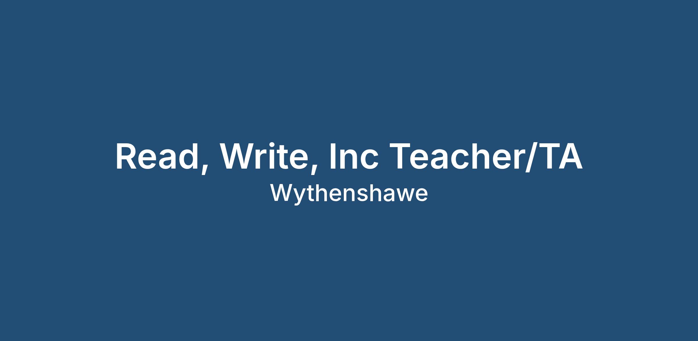 Read, Write, Inc Teacher / TA – Wythenshawe