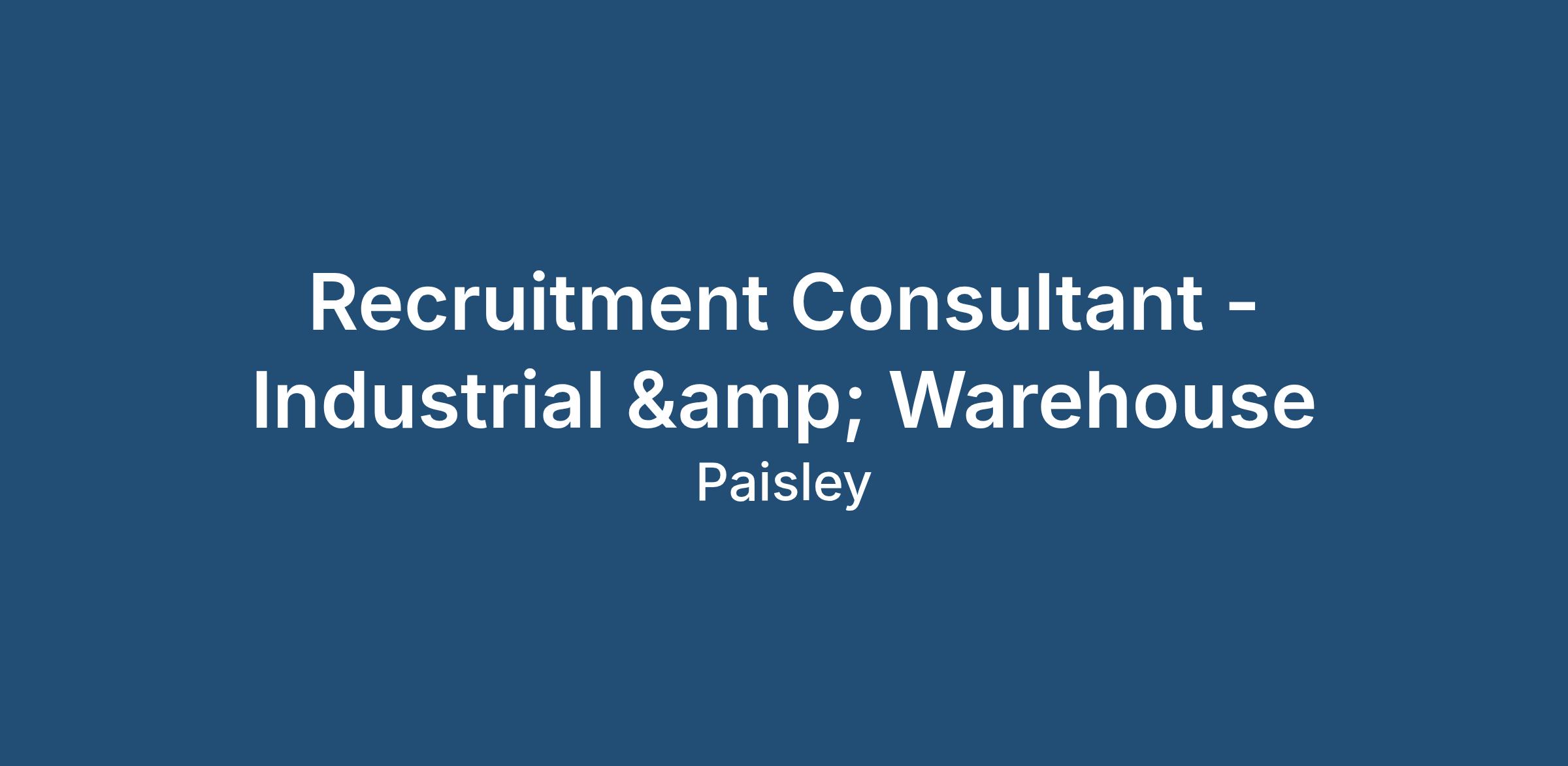 The role has a specific focus on temporary recruitment within the Industrial & Warehouse sector, which is fast-paced and high-volume.