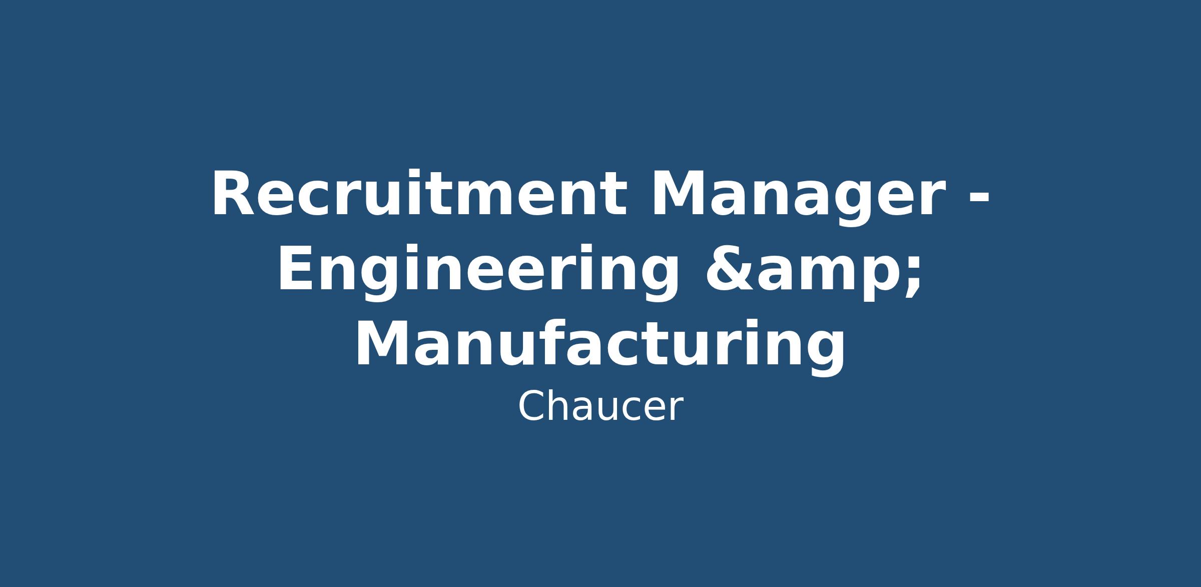 Recruitment Manager - Engineering & Manufacturing