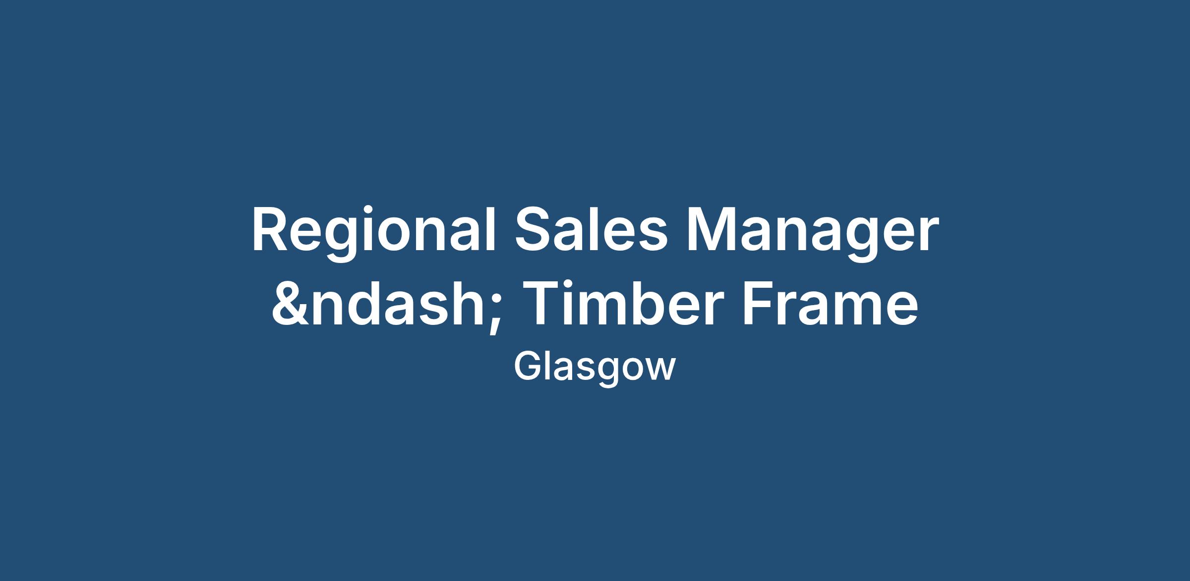 Regional Sales Manager – Timber Frame