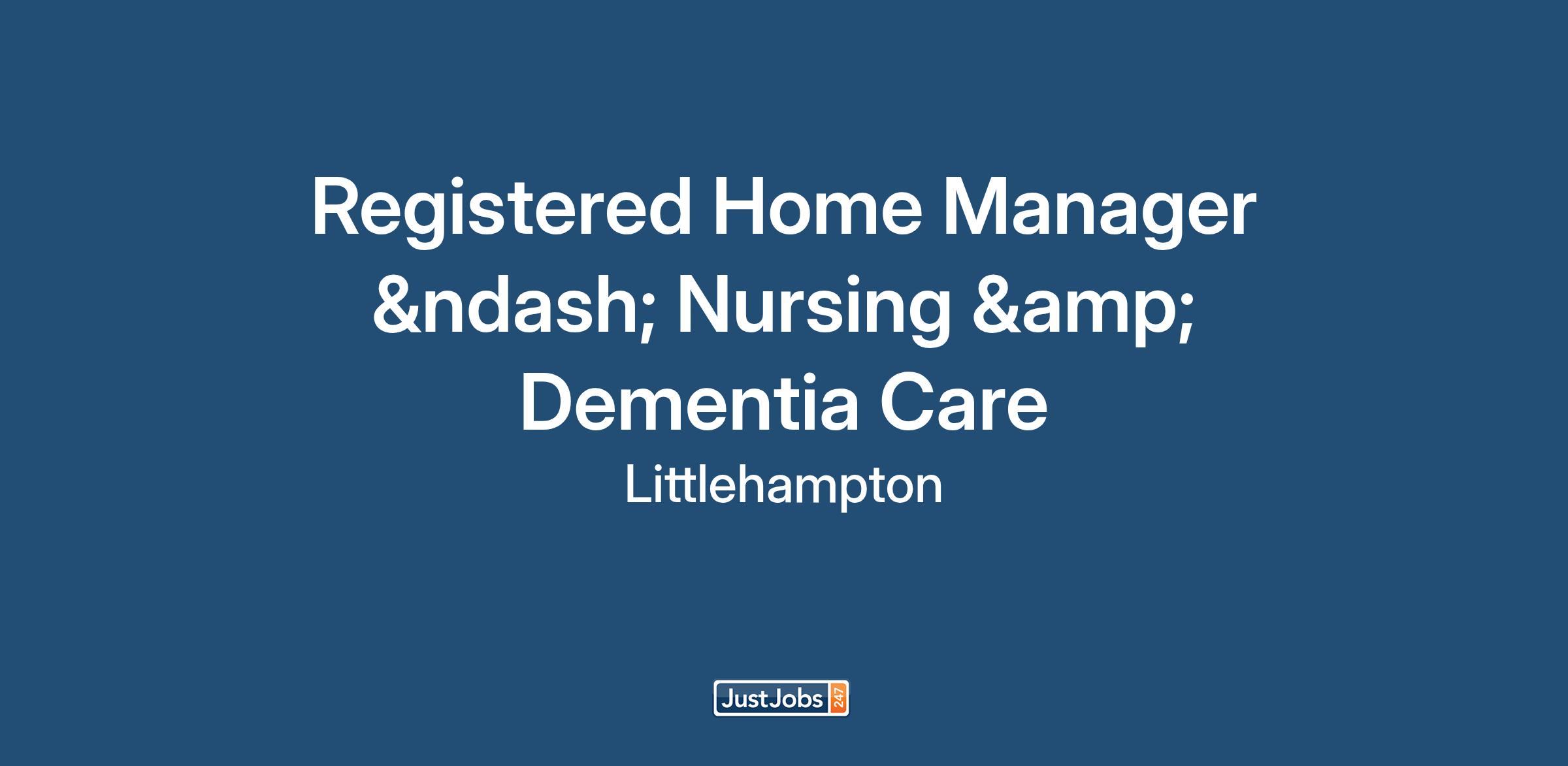 Registered Home Manager – Nursing & Dementia Care