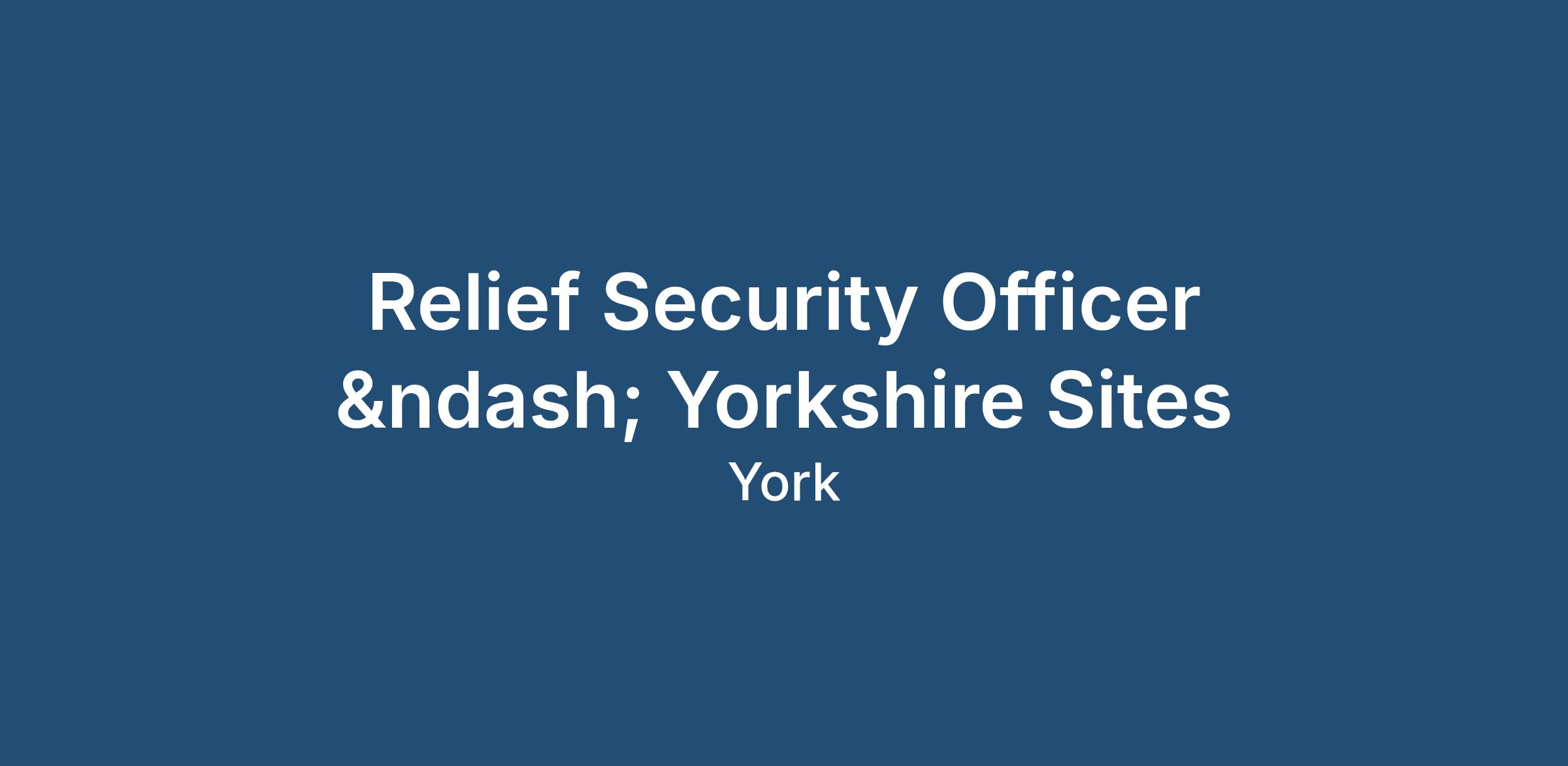We are recruiting Relief Security Officers to cover multiple utility sites in Yorkshire (Bradford, Sheffield, Leeds). This is a zero-hours role with immediate start and training available.