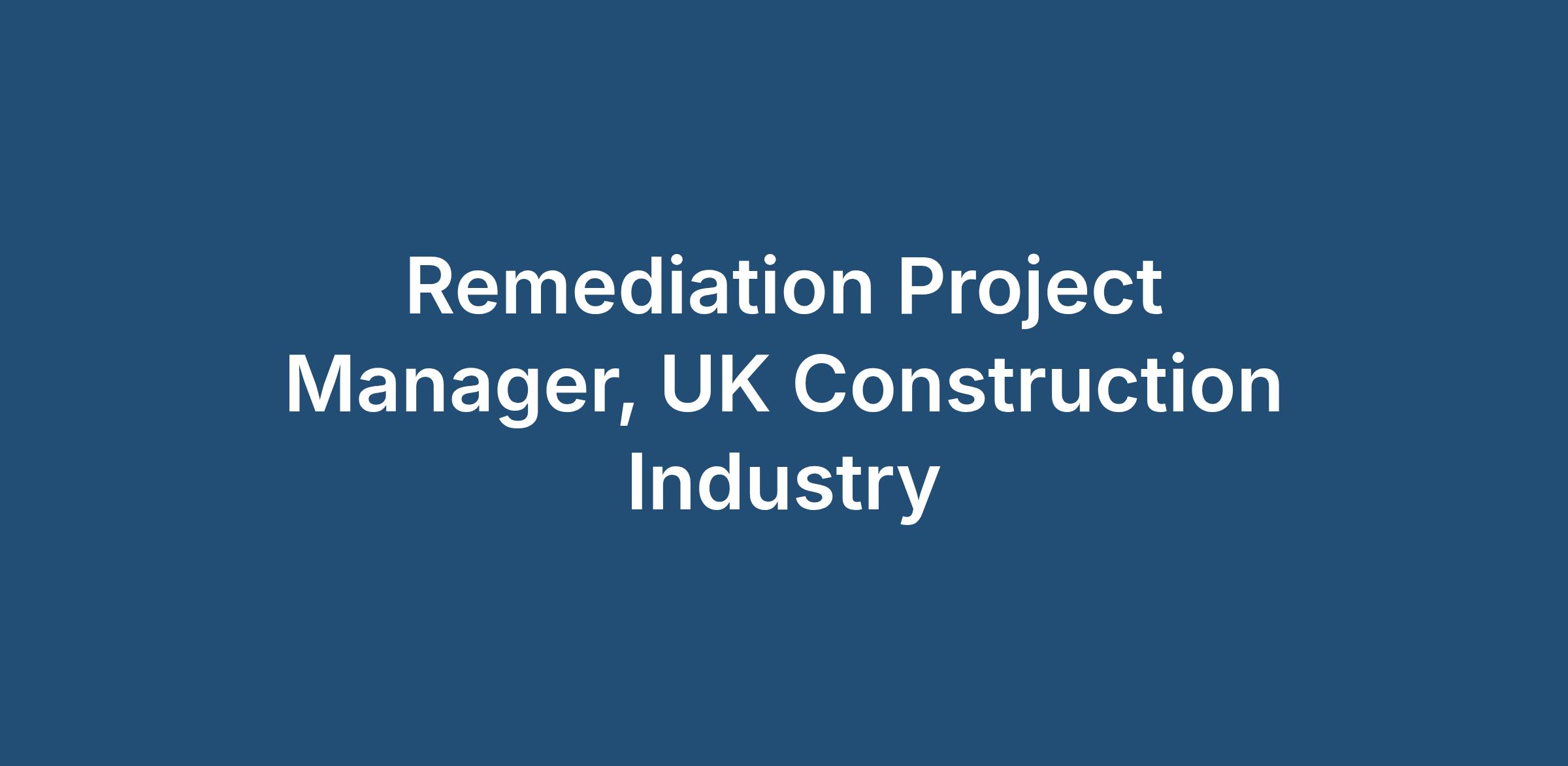 Remediation Project Manager, UK Construction Industry