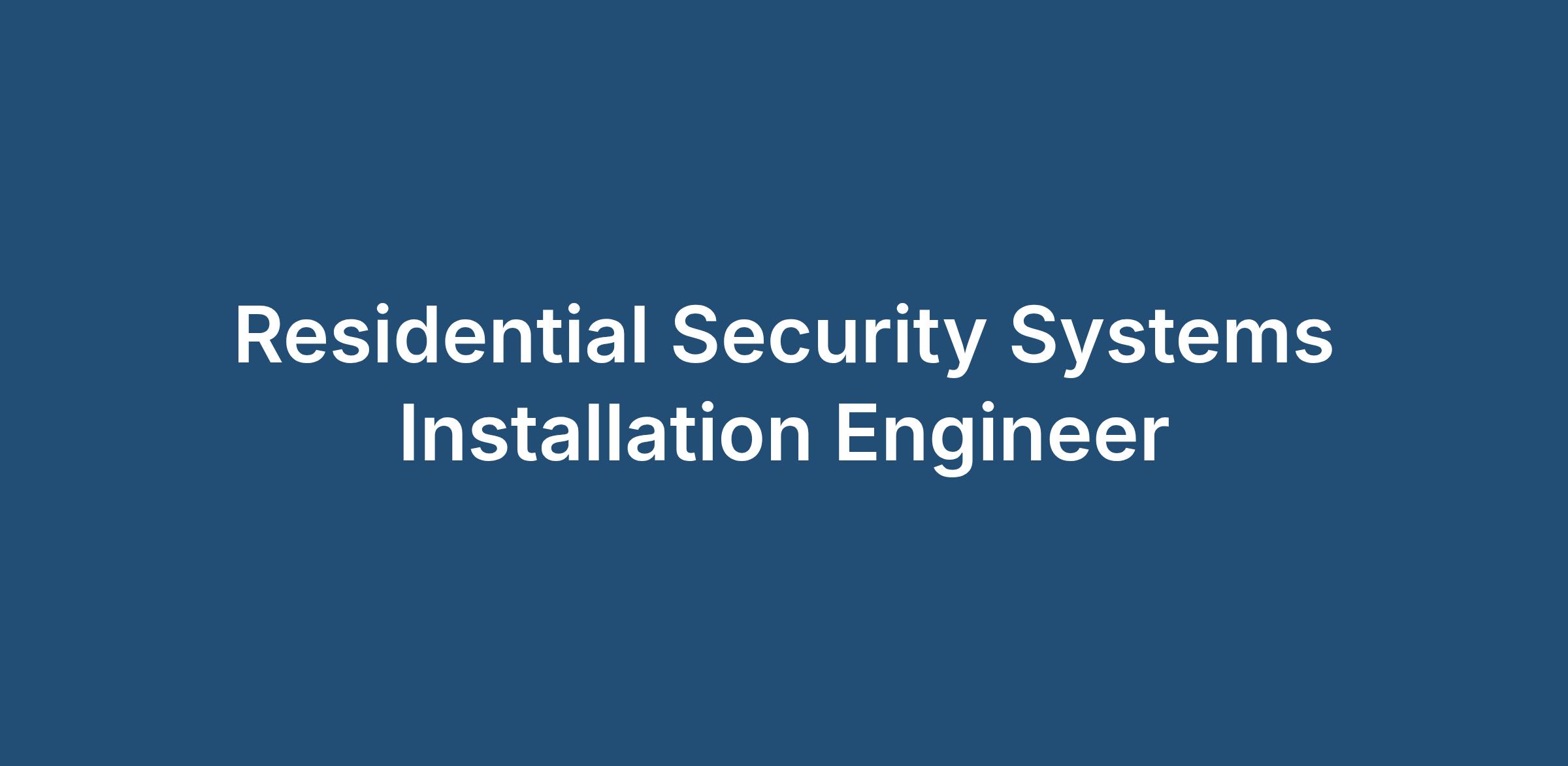 Residential Security Systems Installation Engineer