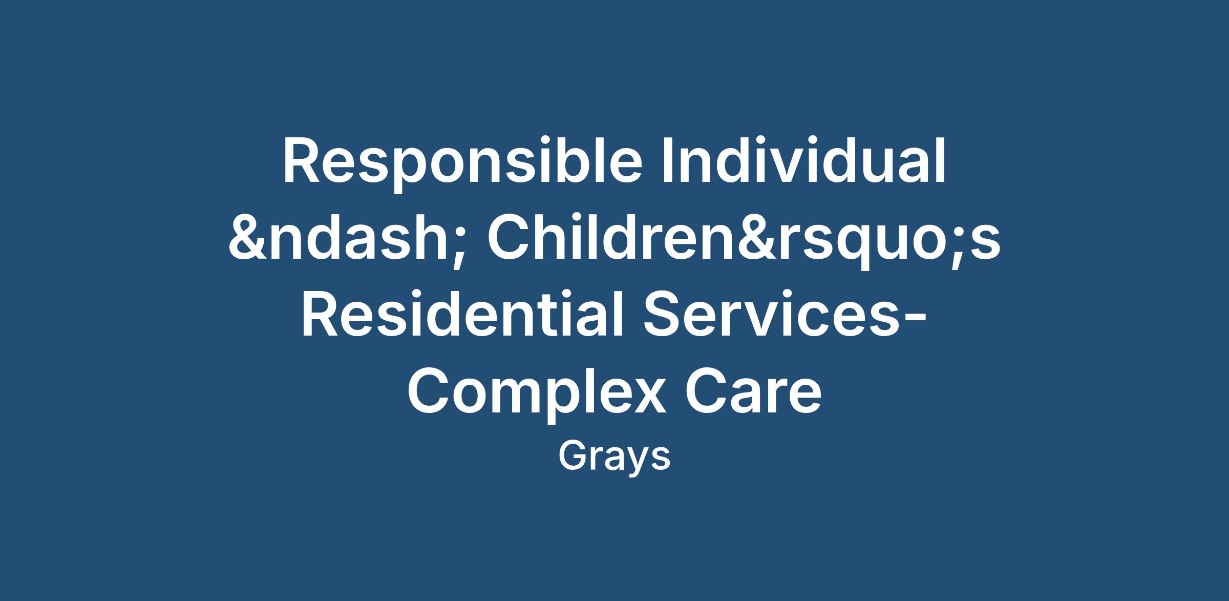 Responsible Individual – Children’s Residential Services-Complex Care