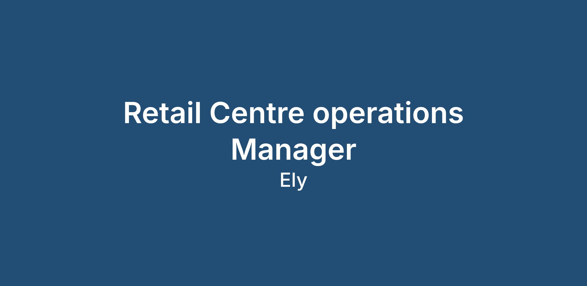 Retail Operations Manager, Ely, Up to £45,000