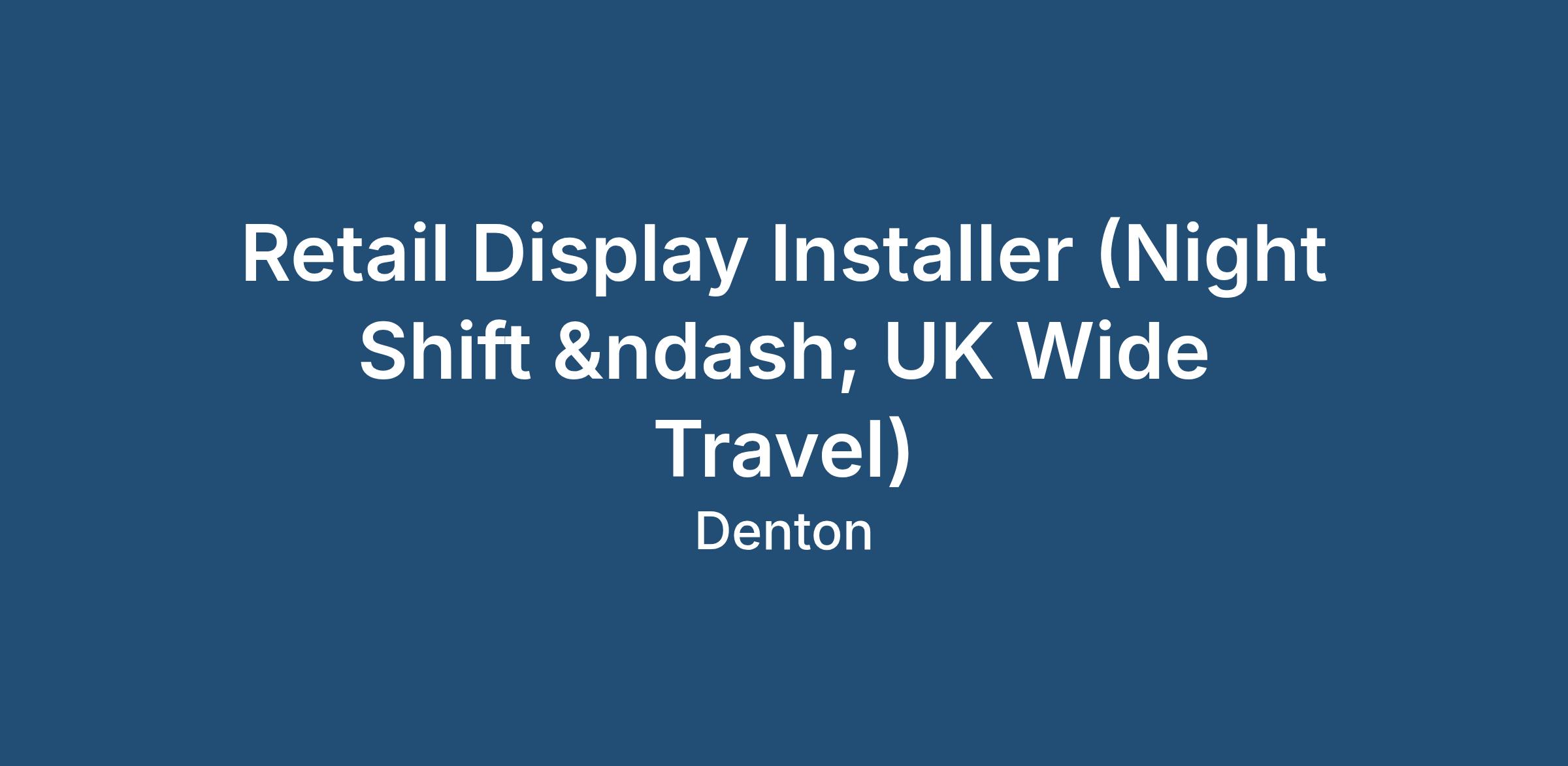 This is a hands-on, fast-paced role where you will travel nationwide, working overnight to ensure retail displays are installed to an exceptional standard, ready for store opening.