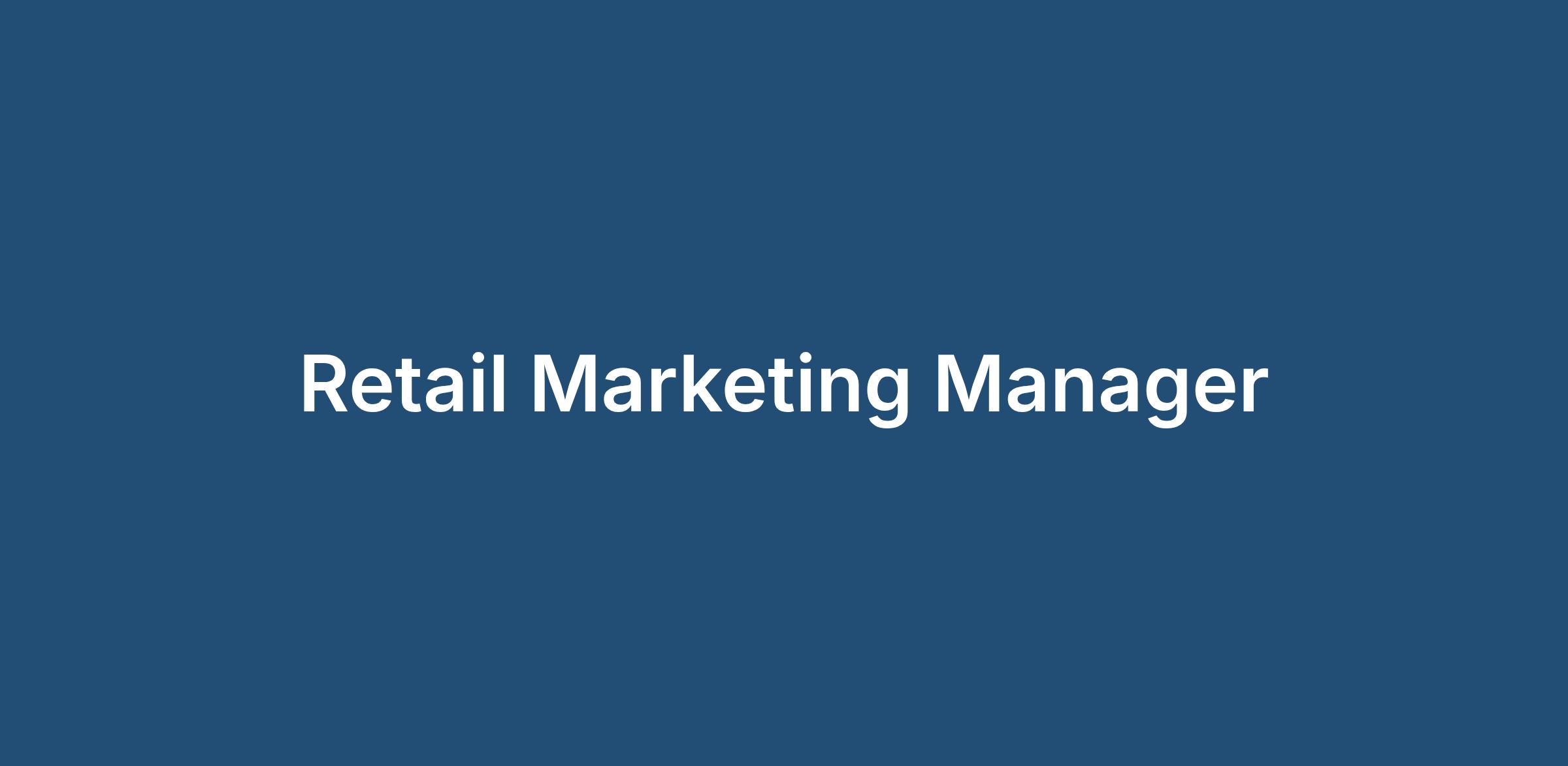 The Retail Marketing Manager is responsible for three key areas; point-of-sale (PoS) strategies, visual merchandising, local marketing.