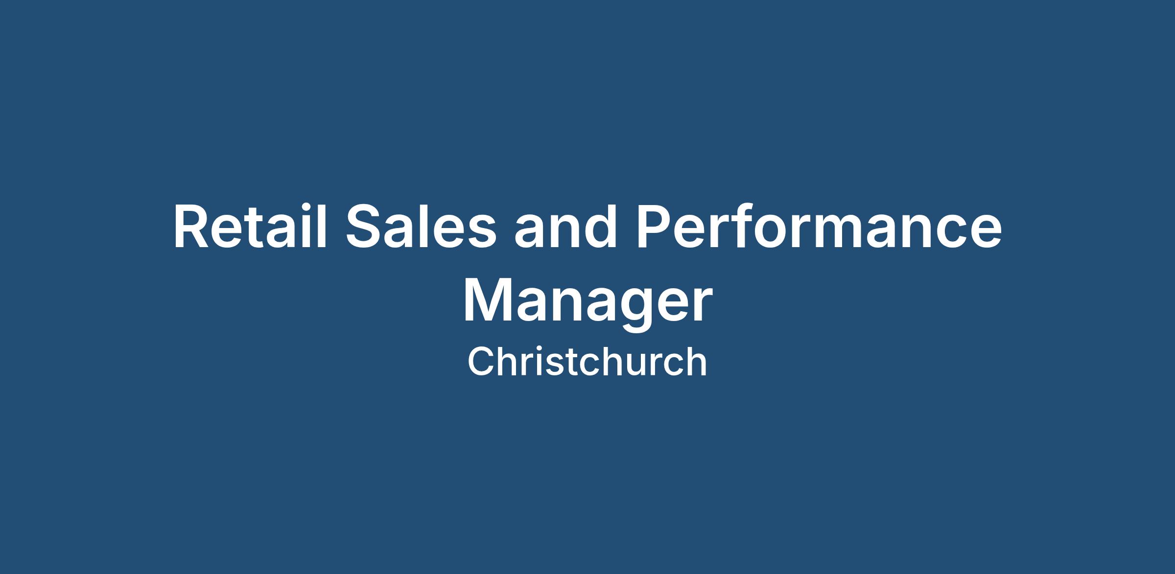 Retail Sales and Performance Manager Job In Christchurch