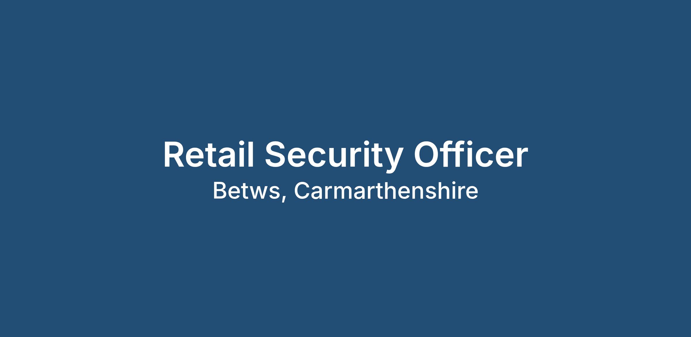 TSS are looking for a Retail Security Officer in Ammanford where no two days will be the same and you will have the opportunity to carve out a career with the biggest name in security.