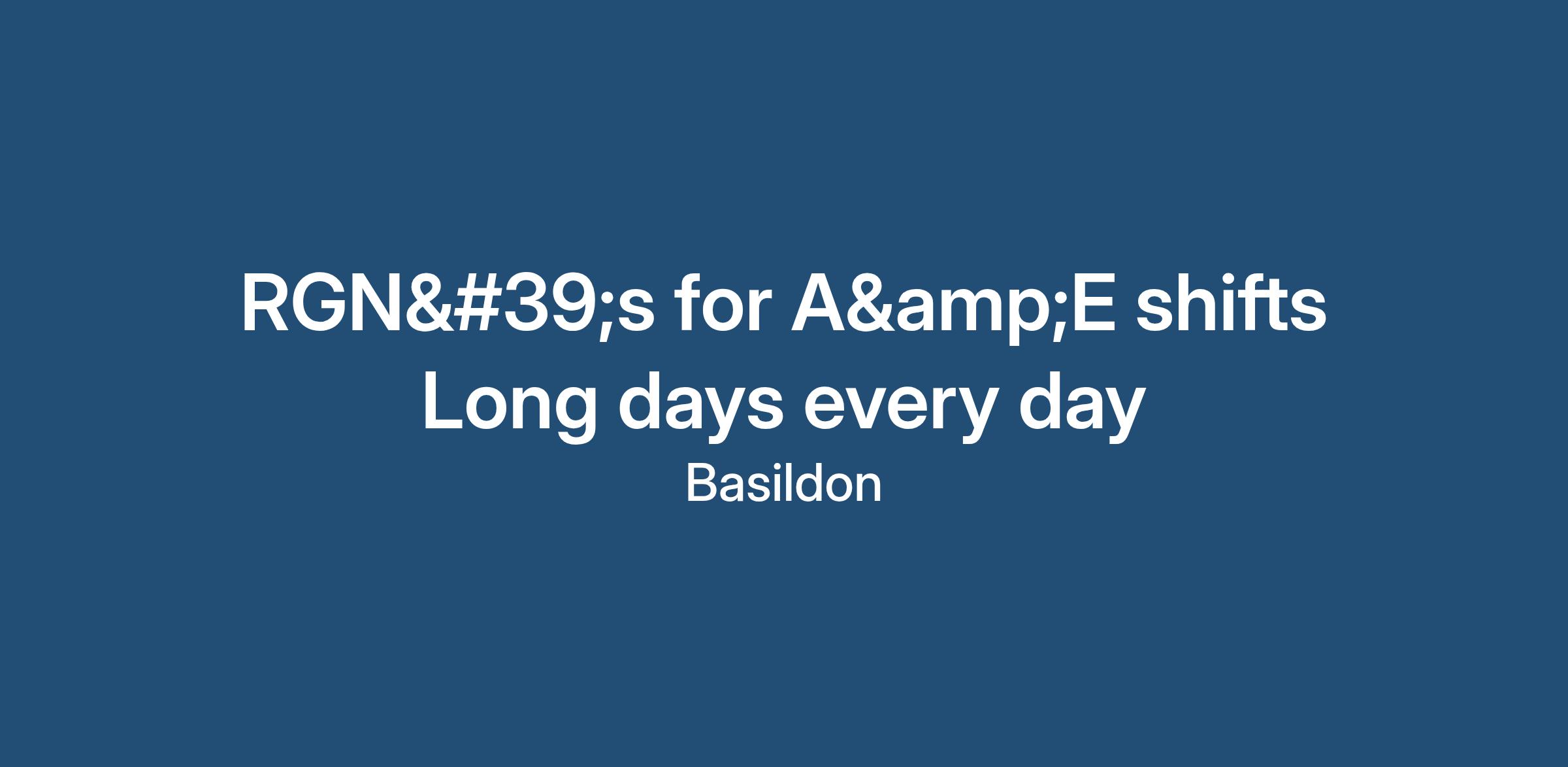RGN's for A&E shifts Long days every day