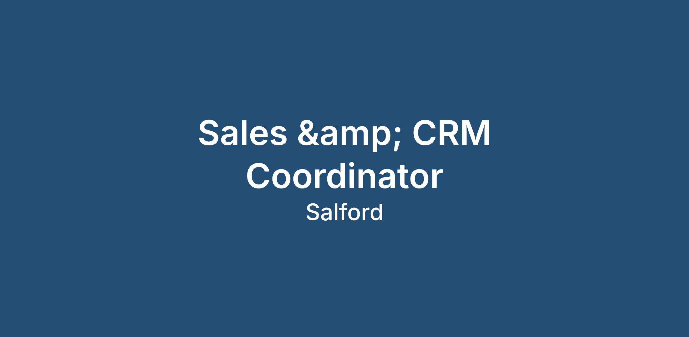 Sales & CRM Coordinator role