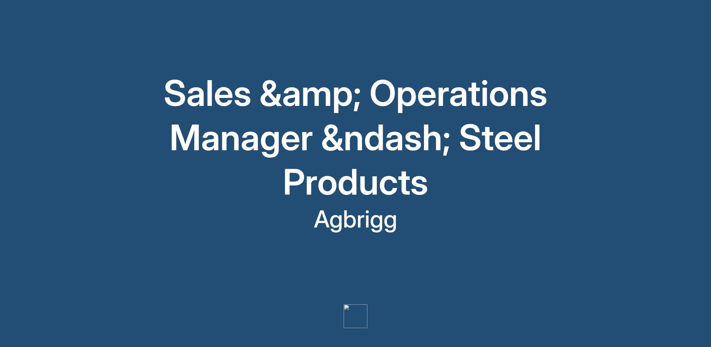The role of the Sales & Operations Manager – Steel Products will involve: