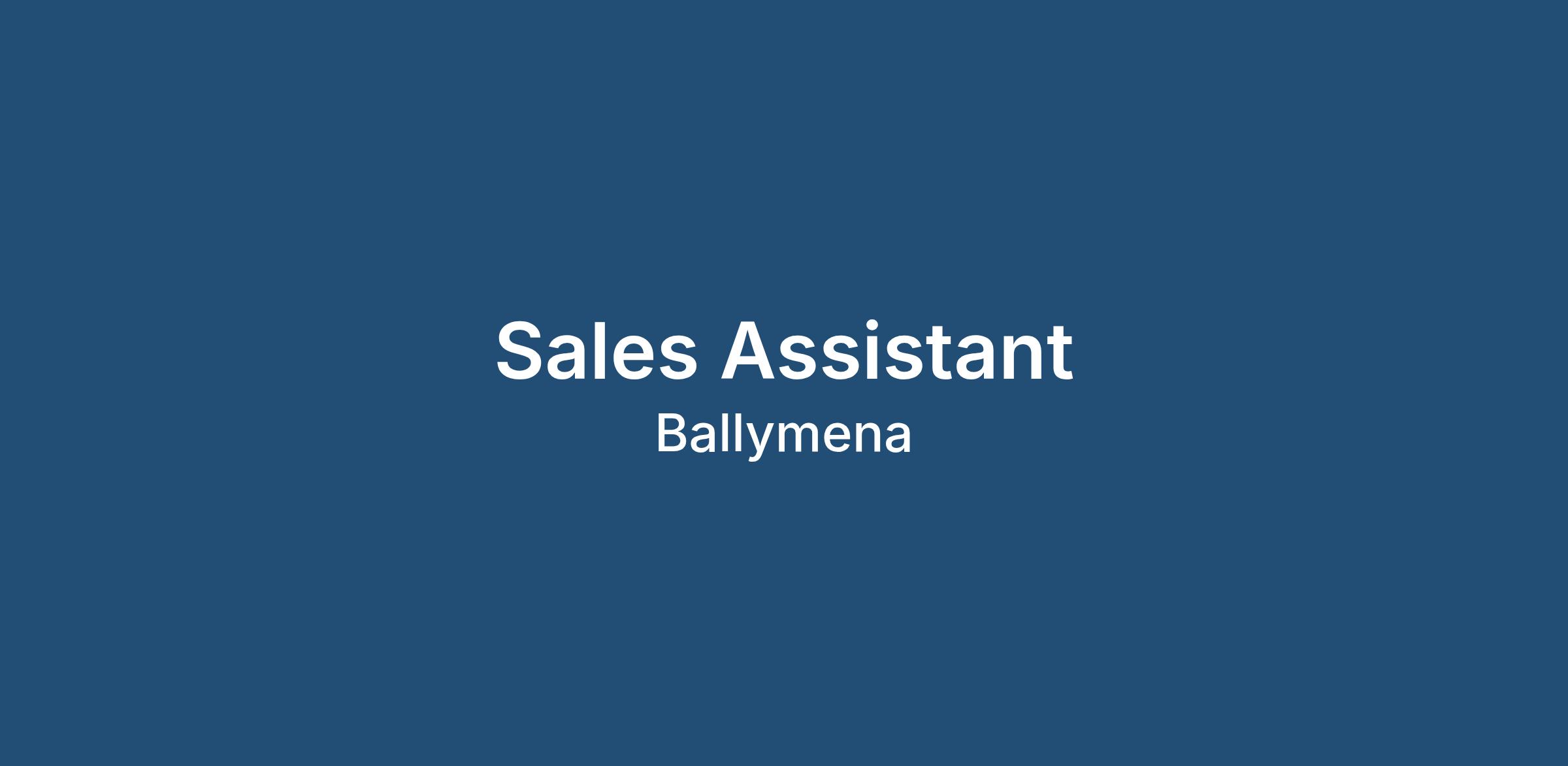 Sales Assistant | Retail Sales | Ballymena | Full Time | OTE; £38,000 |
