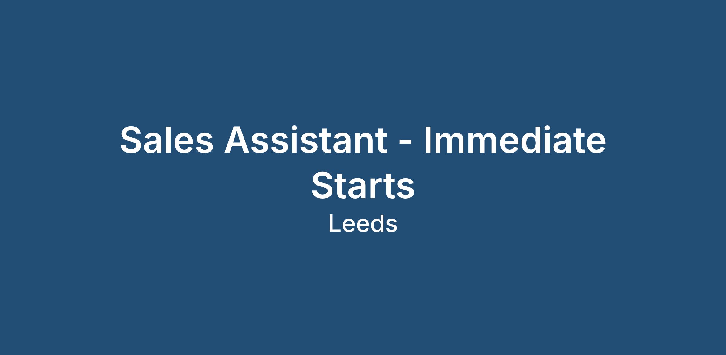 Sales Assistant - Immediate Starts