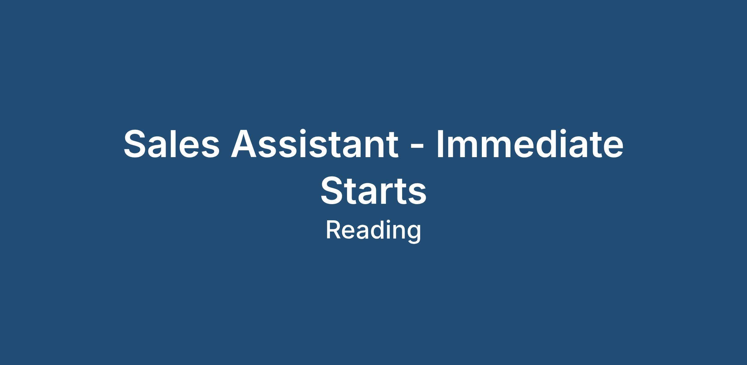 Sales Assistant - Immediate Starts