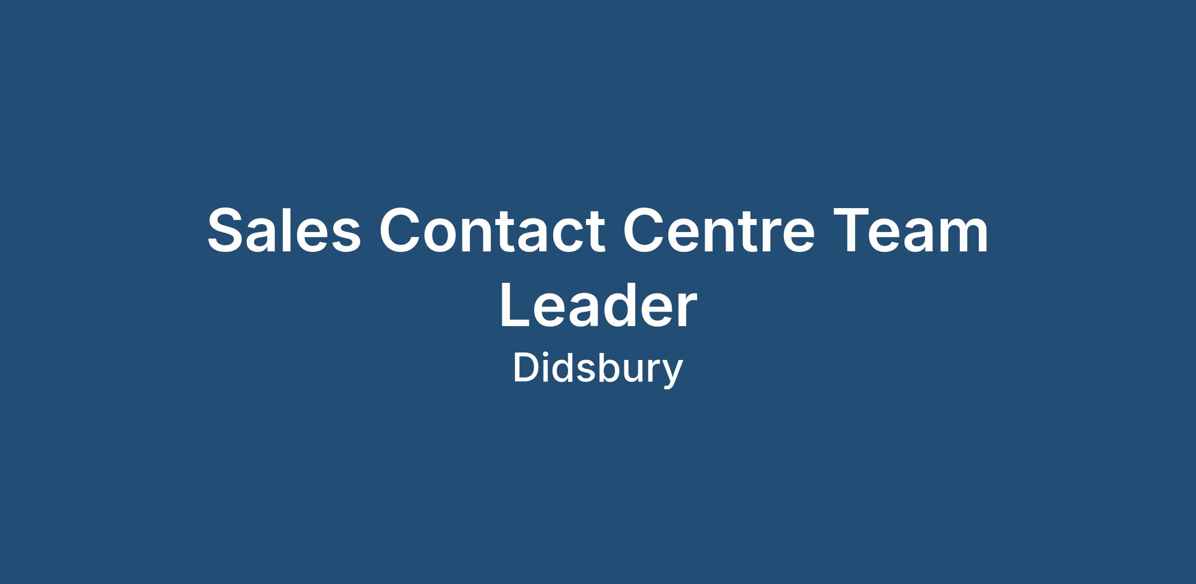 Sales Contact Centre Team Leader - Join Our Leadership Team!
