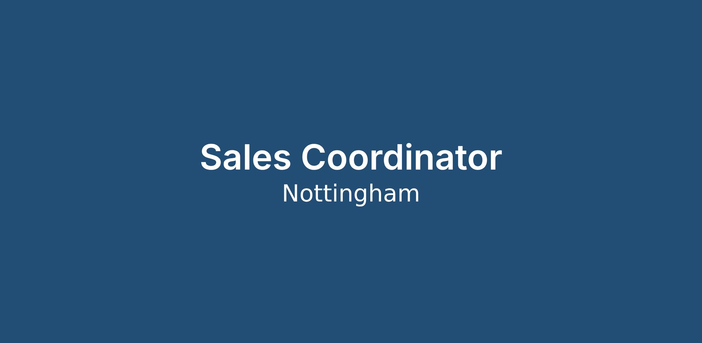 Comprehensive training and development opportunities.If you are interested in this Sales Coordinator role based in Nottingham and have a passion for the industrial and manufacturing industry, we encourage you to apply today